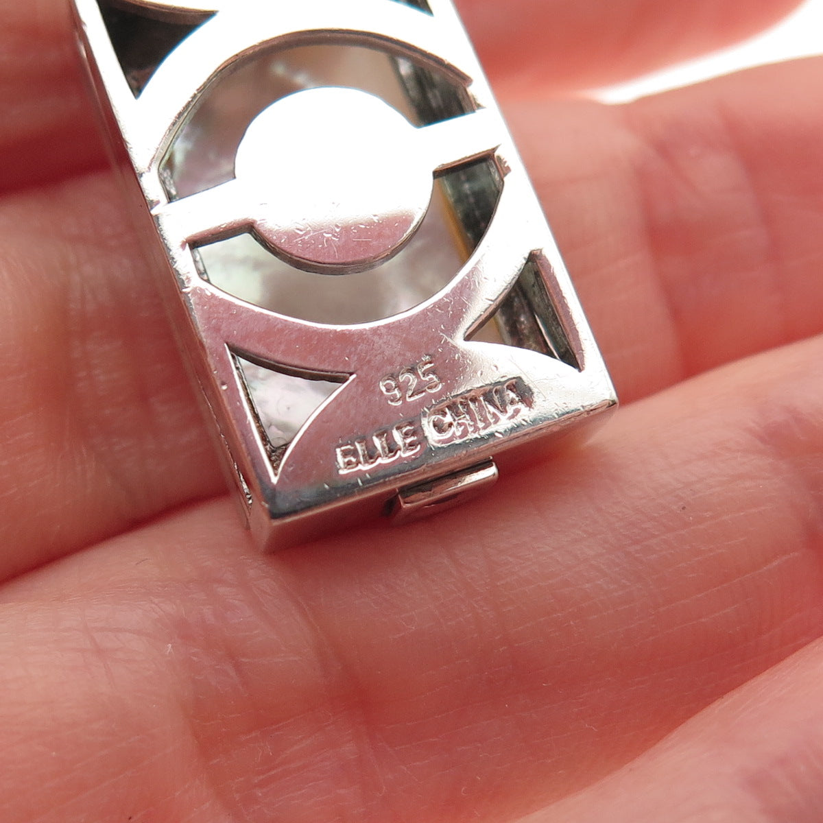 ELLE 925 Sterling Silver Vintage Real MOP Black Onyx Ruby Charm Pendant