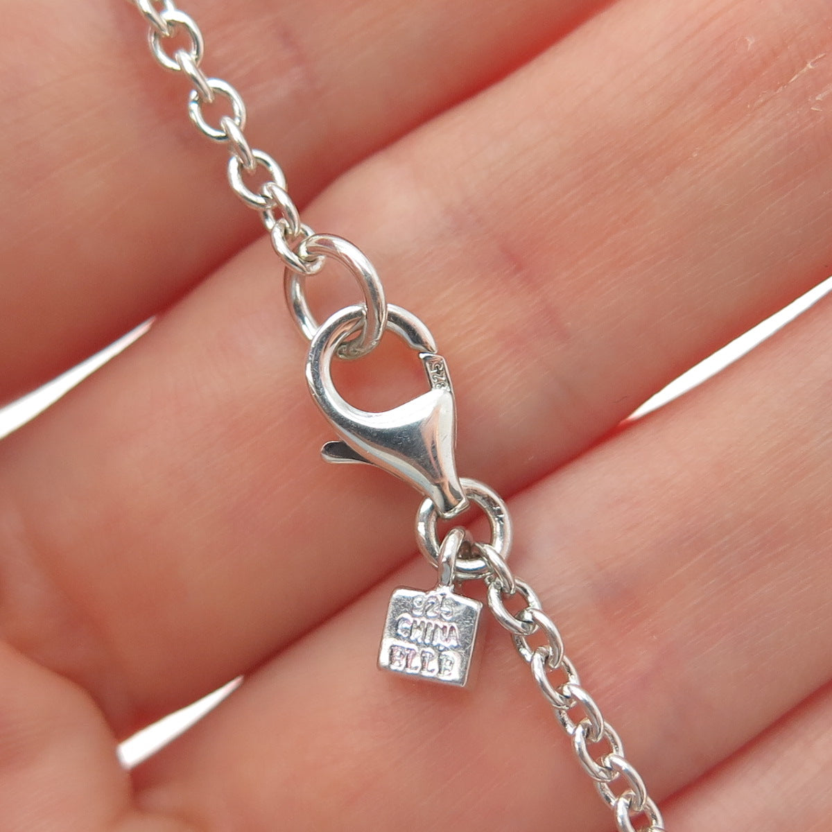 ELLE 925 Sterling Silver Vintage Real Ruby Modernist Cable Chain Necklace 24"