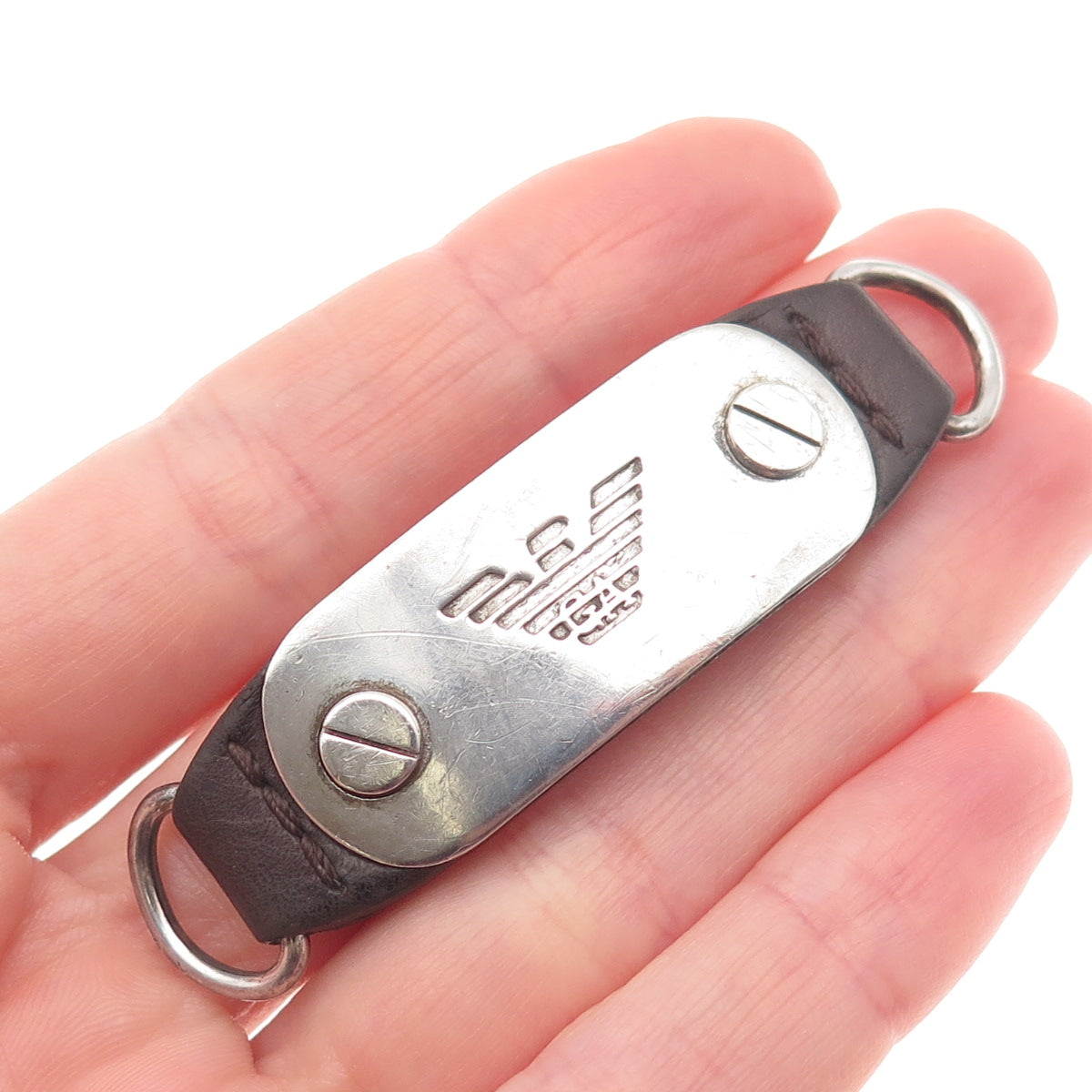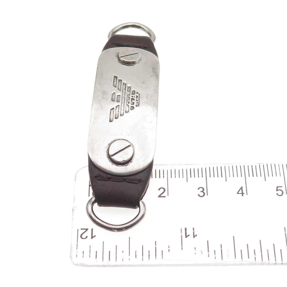 EMPORIO ARMANI 925 Sterling Silver & Leather Vintage Bracelet Centerpiece Buckle