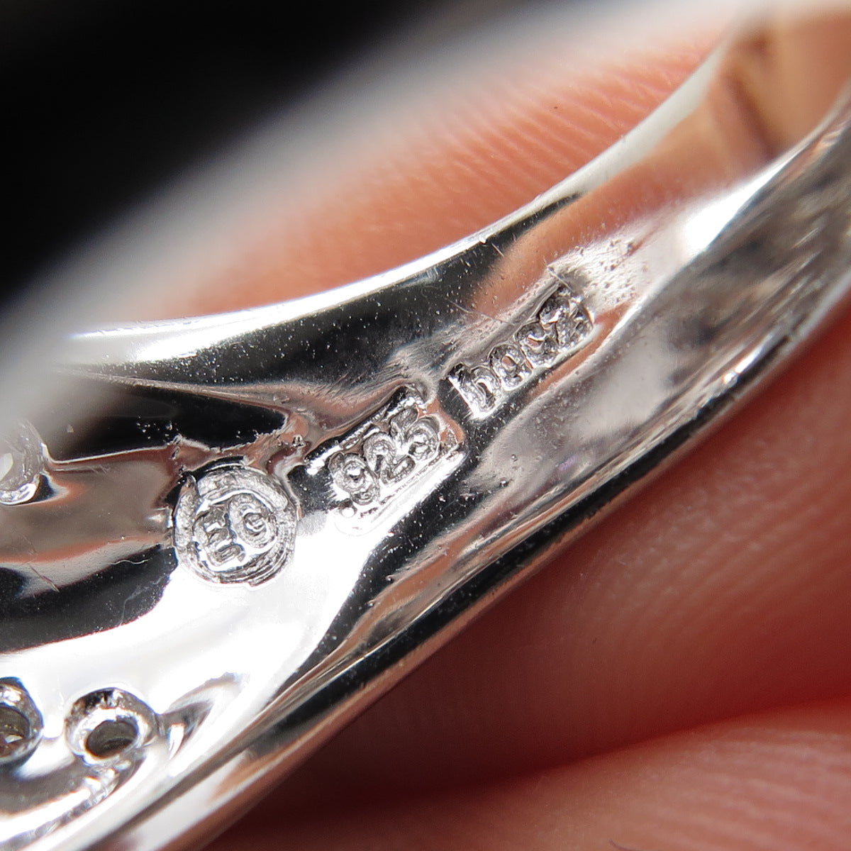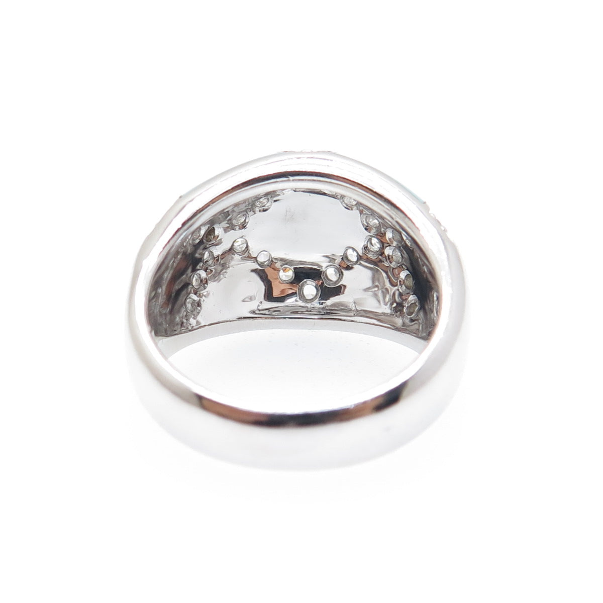 ERIC GROSSBARDT 925 Sterling Silver Vintage Real Turquoise & C Z Ring Size 8
