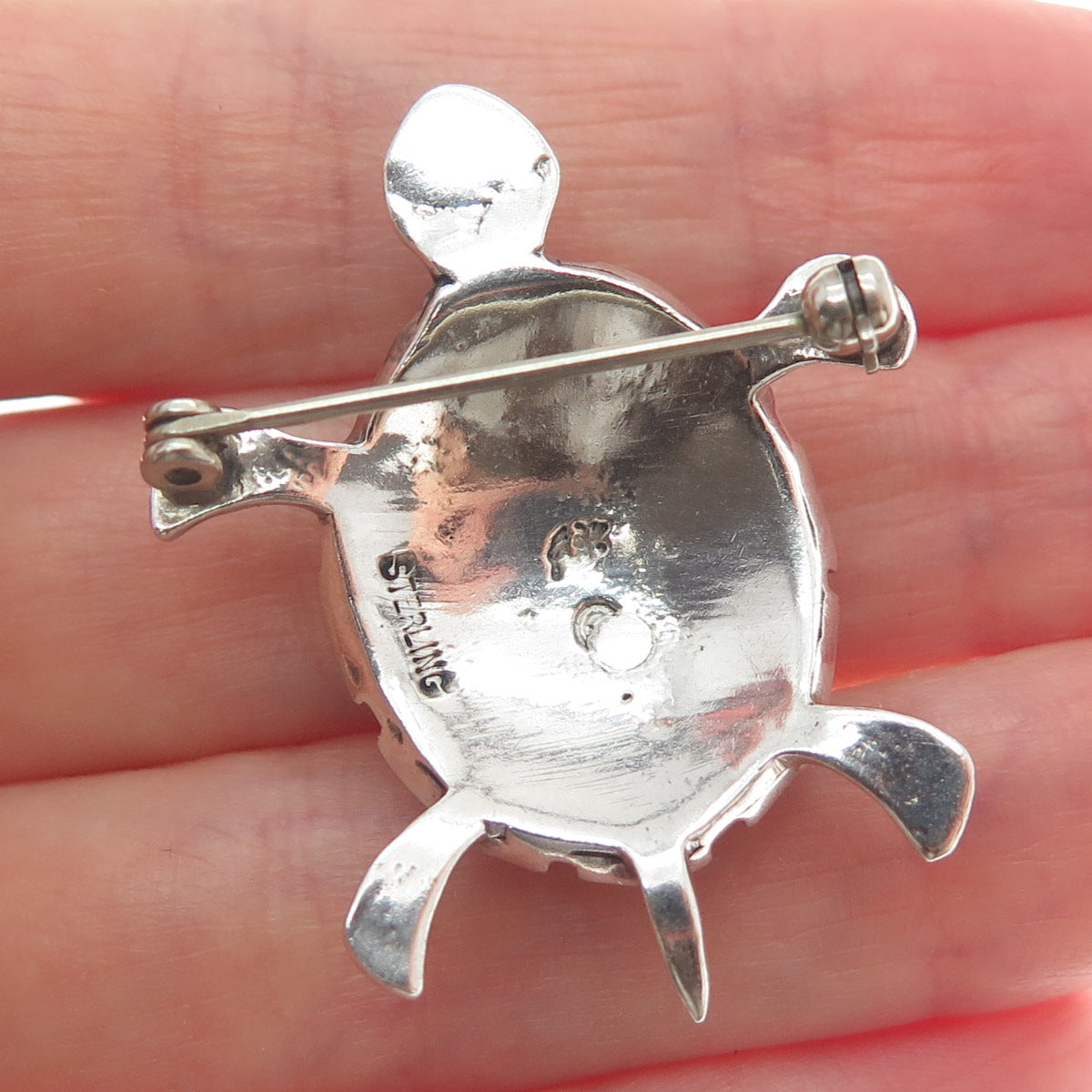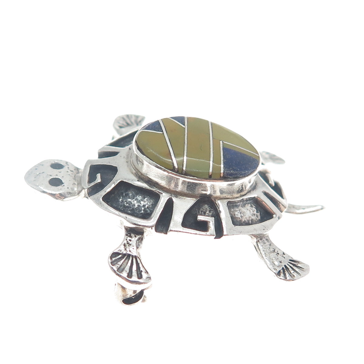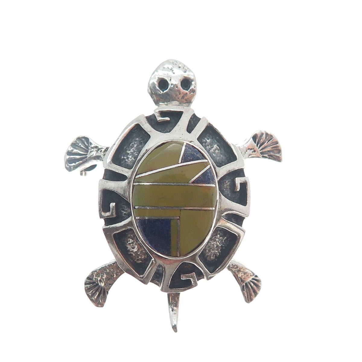 ERVIN HOSKIE NAVAJO Old Pawn 925 Sterling Vintage Jasper & Lapis Turtle Brooch