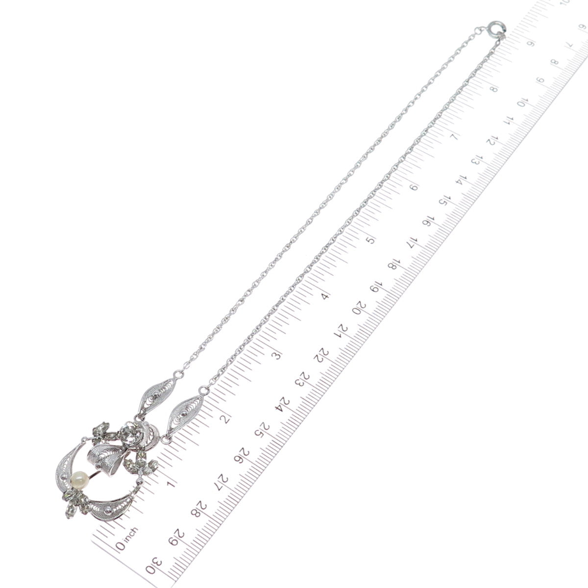 ESPO JOSEPH ESPOSITO Sterling Silver Antique Real Pearl Rhinestone Necklace 16"