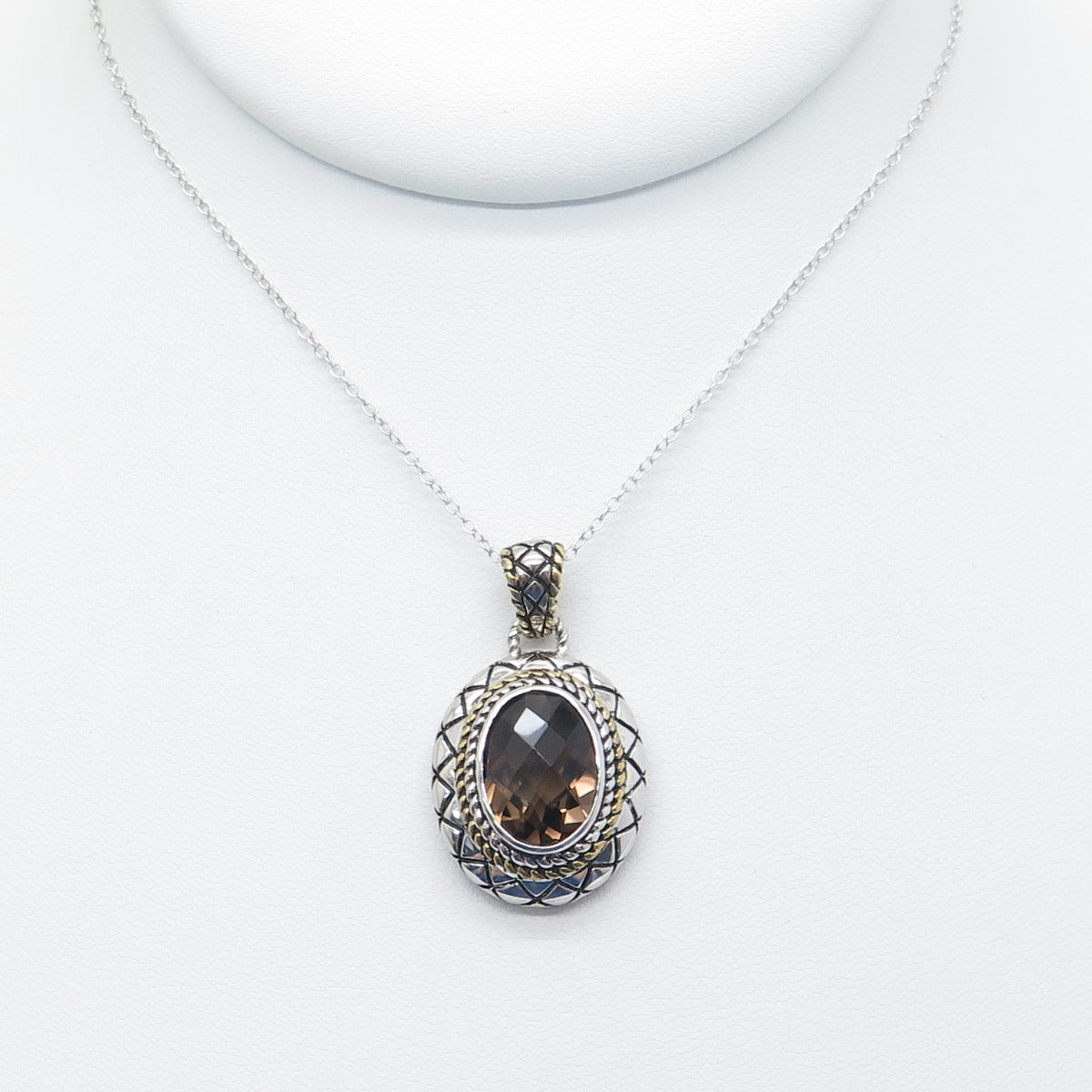 FADI 925 Sterling Silver 2-Tone Real Smoky Quartz Cable Chain Necklace 18"