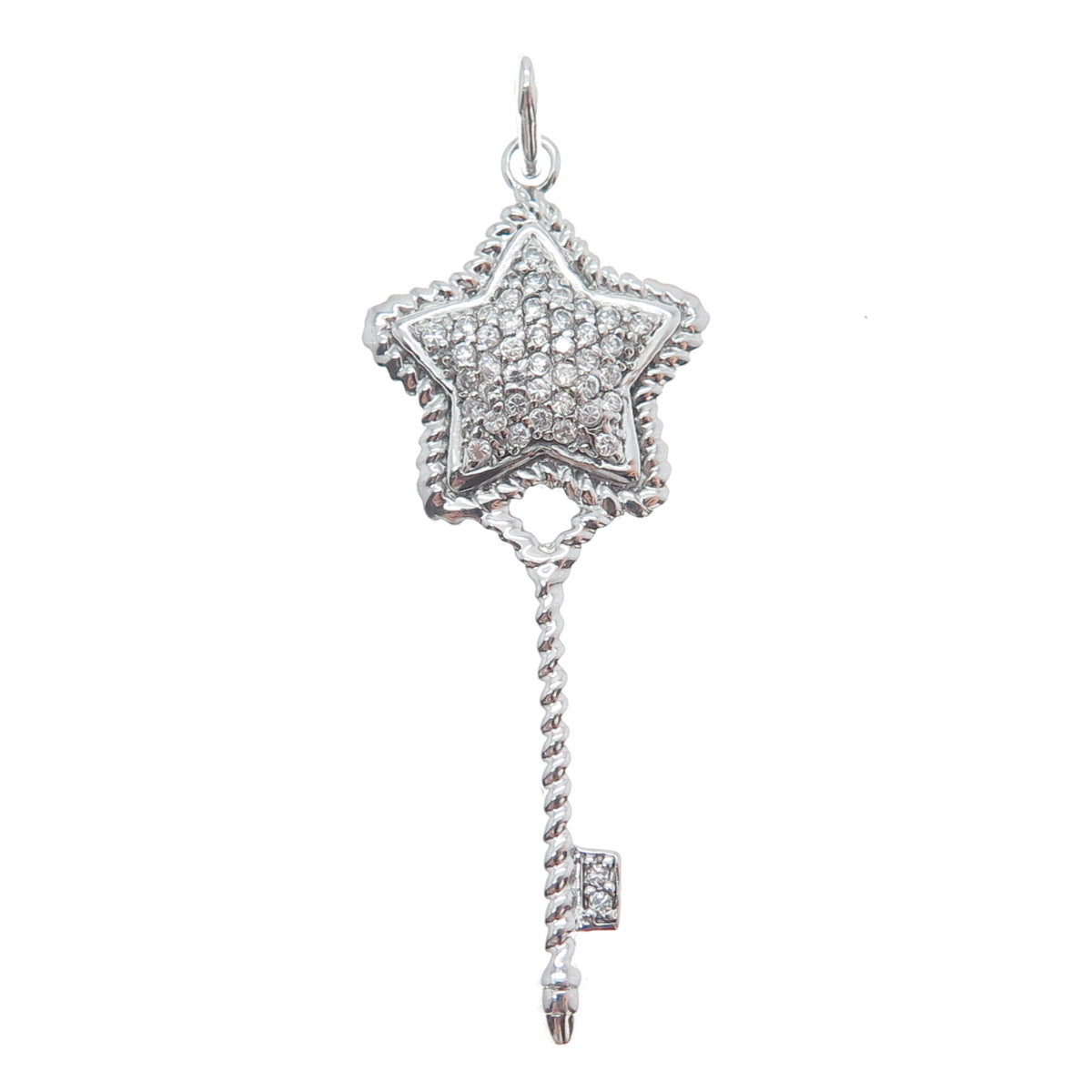 FADI 925 Sterling Silver Round-Cut C Z Star Key Charm Pendant