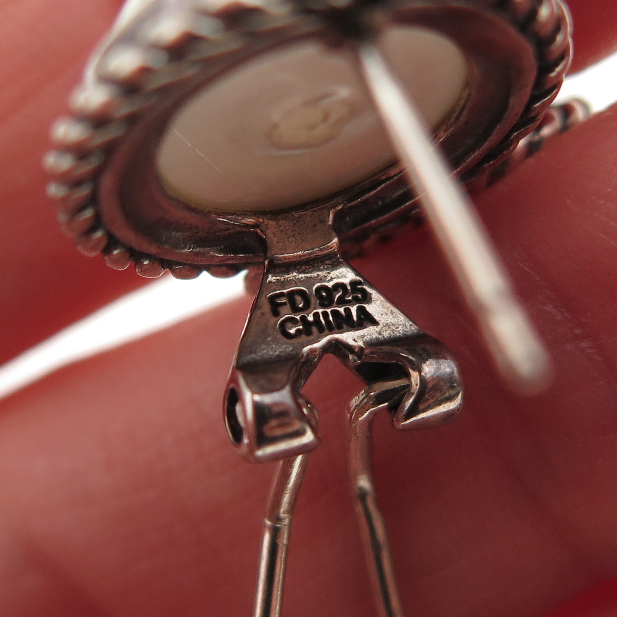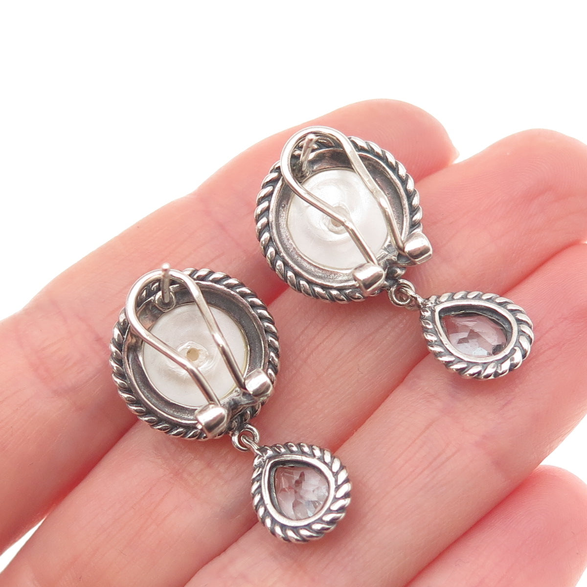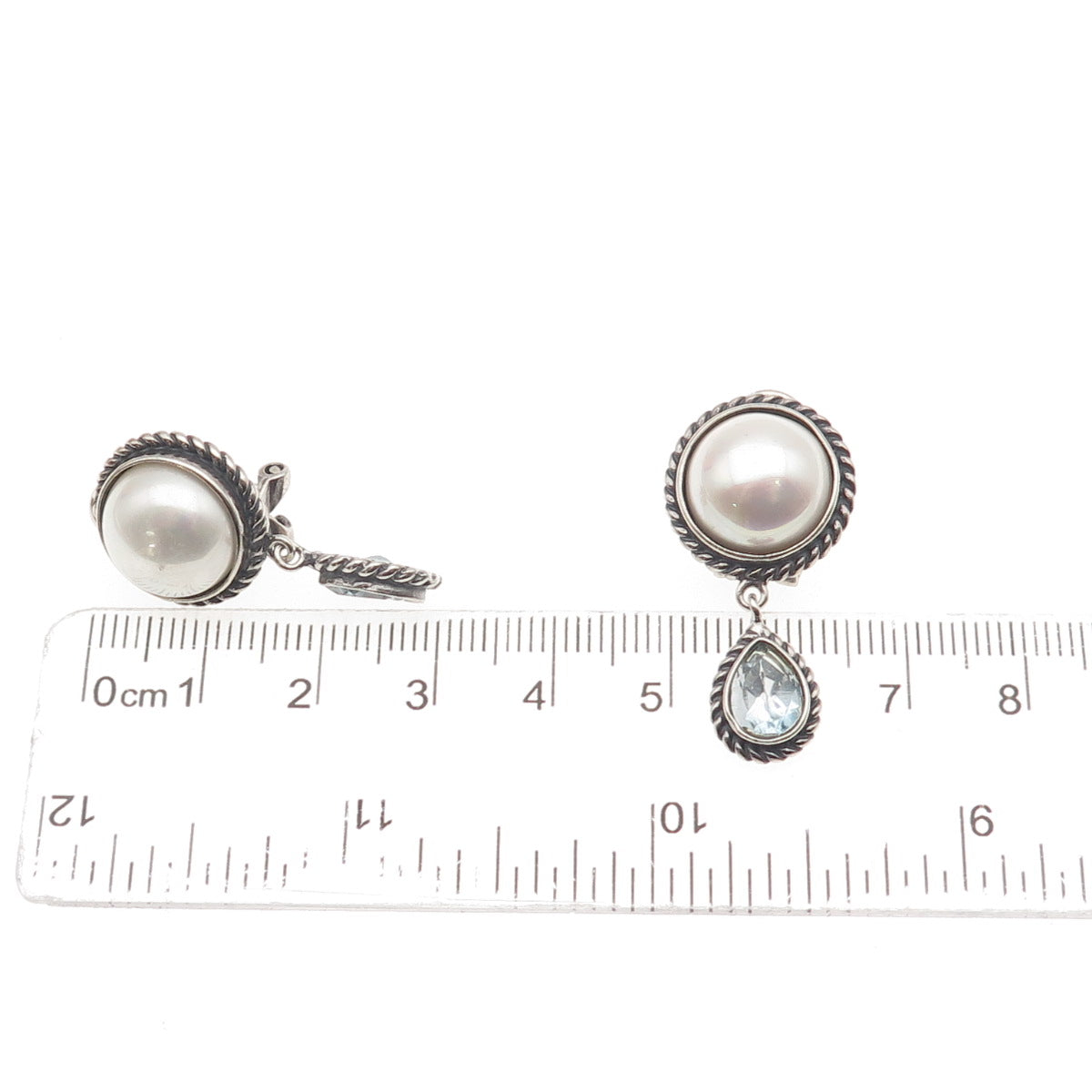 FD Felicia 925 Sterling Vintage Real Blue Topaz & Faux Pearl Omega Back Earrings
