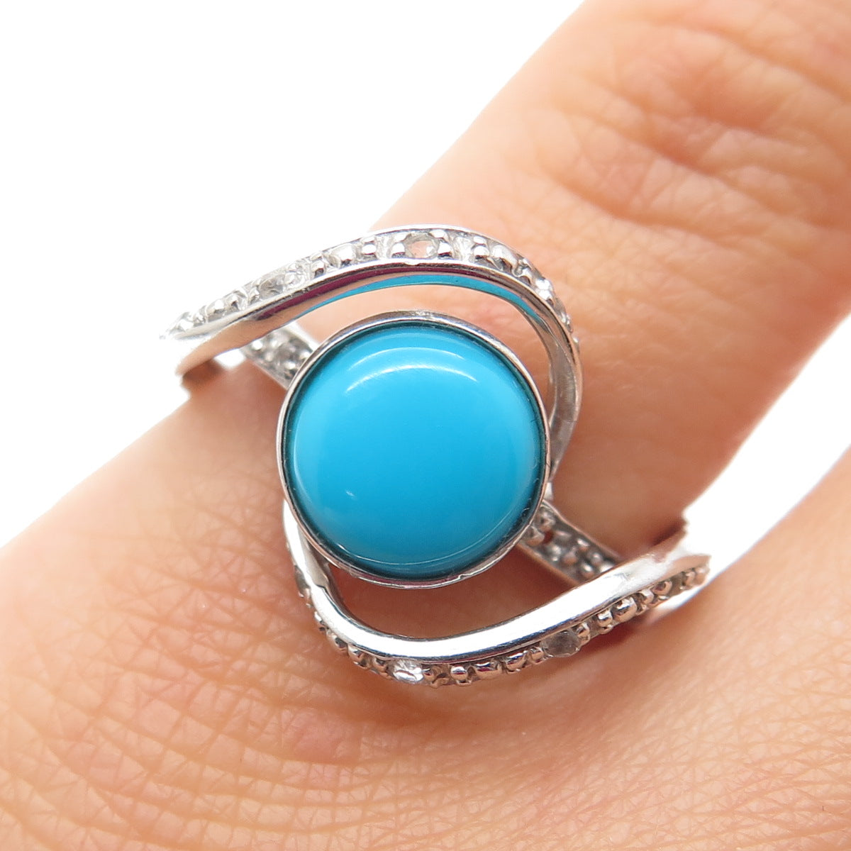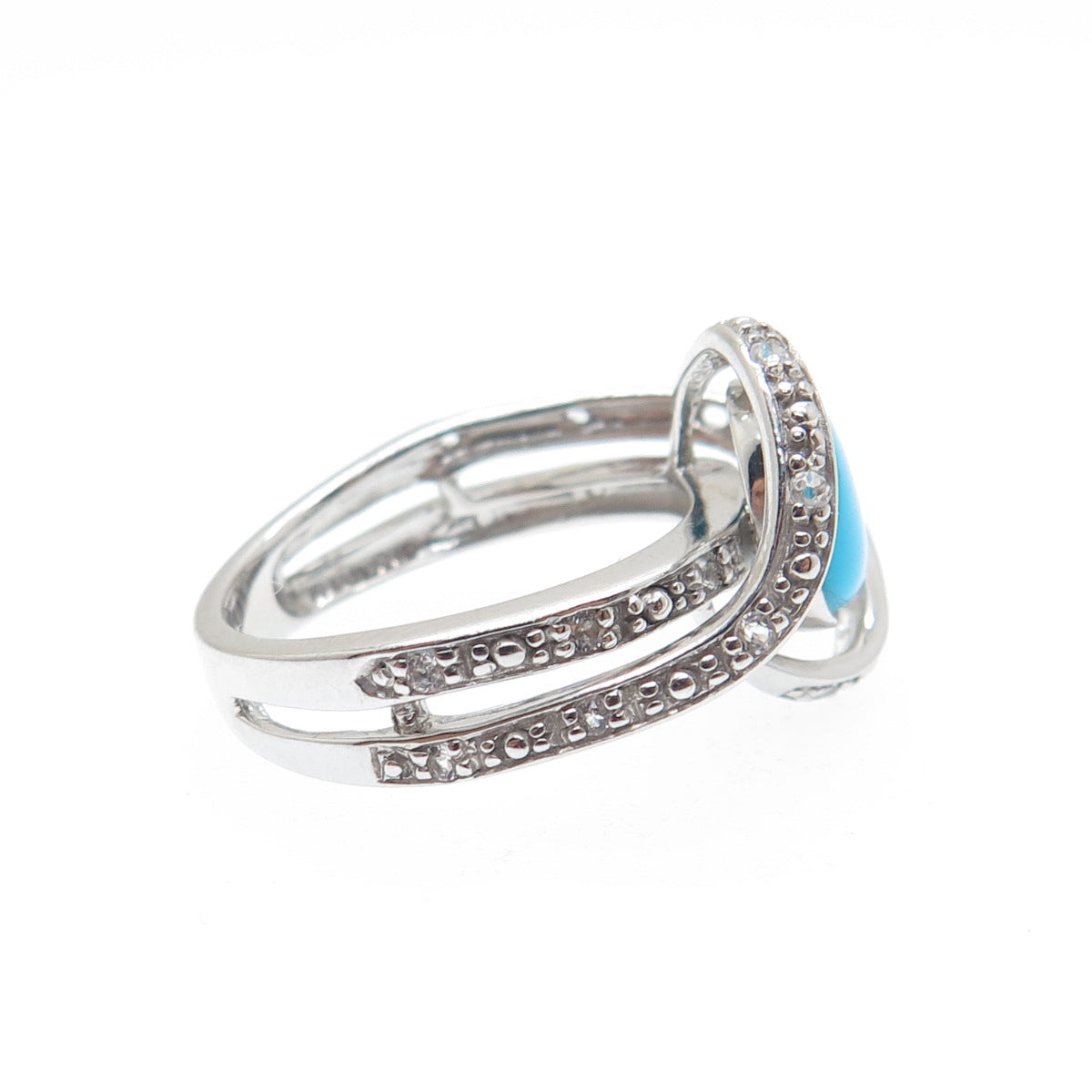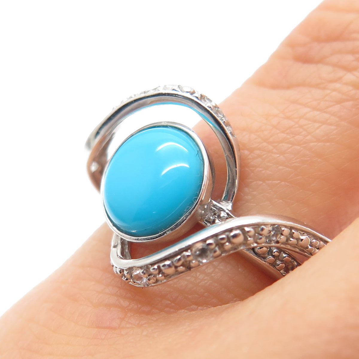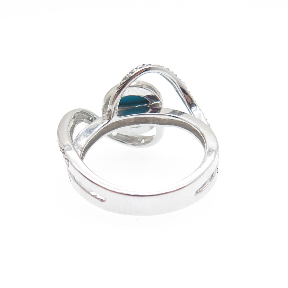 FD FELICIA DESIGN 925 Sterling Silver Real Turquoise White Topaz Ring Size 5.25