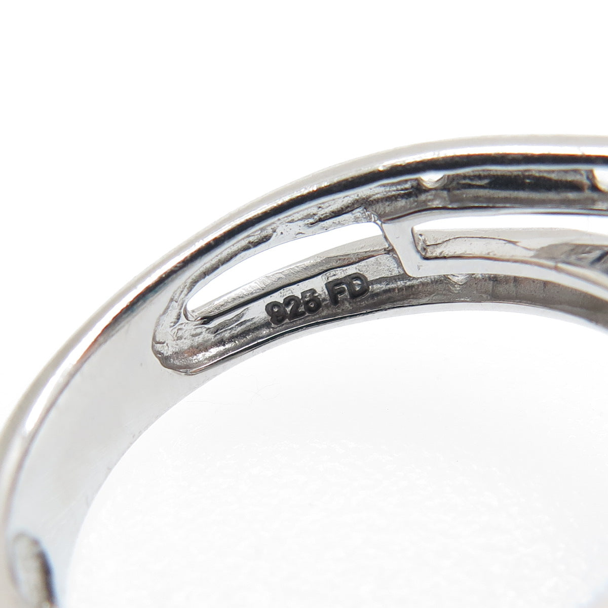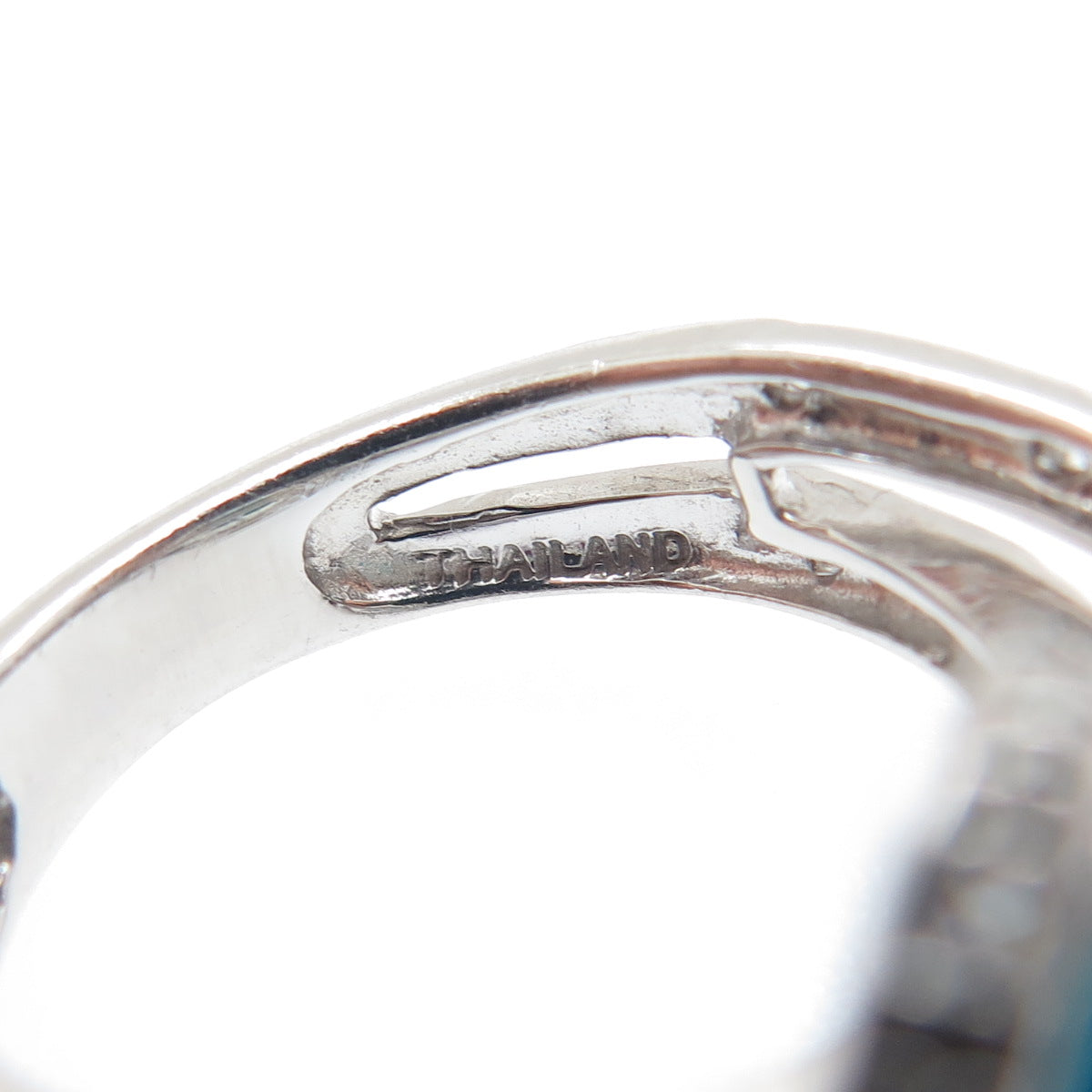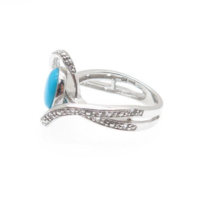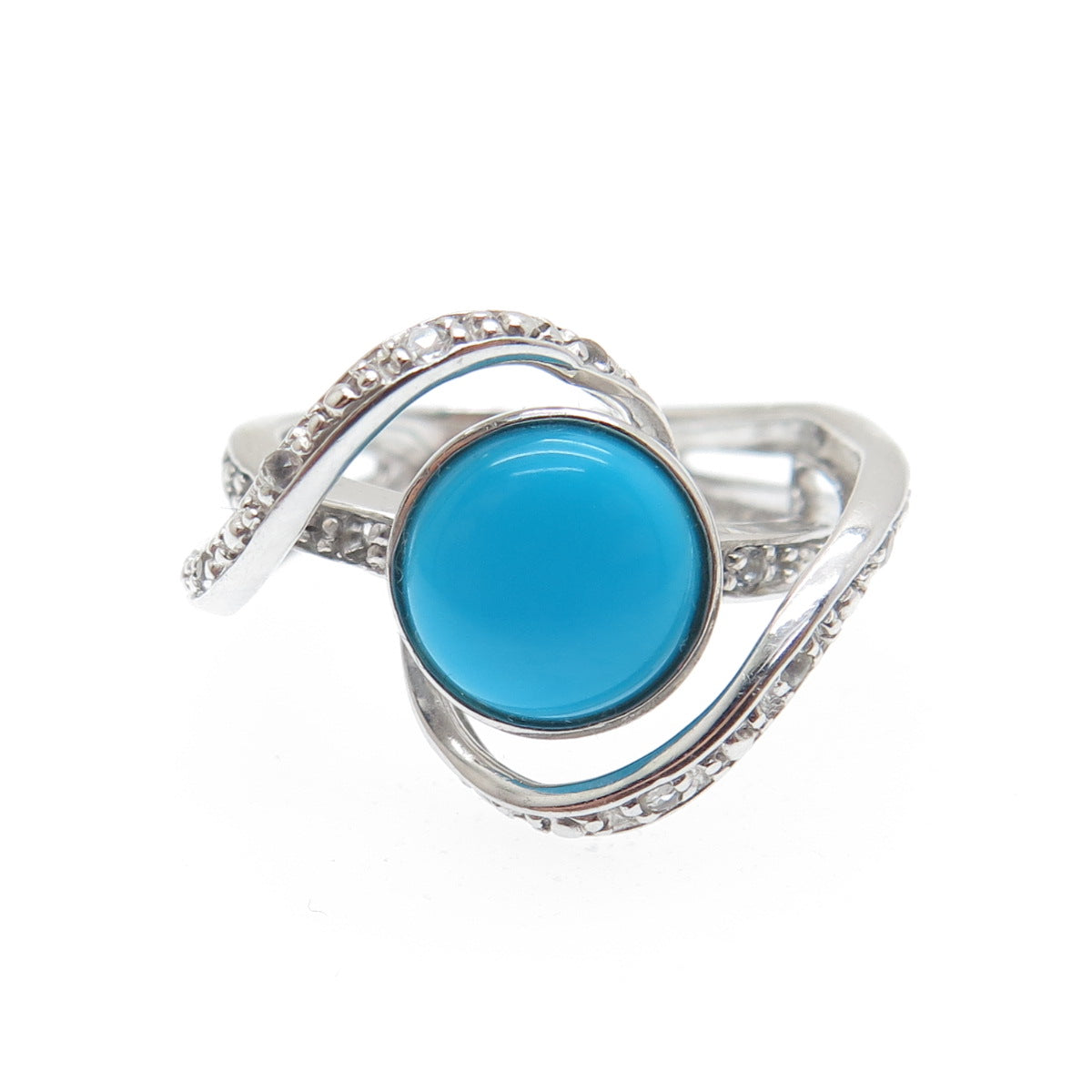 FD FELICIA DESIGN 925 Sterling Silver Real Turquoise White Topaz Ring Size 5.25