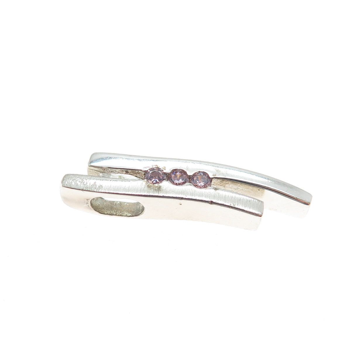 FOSSIL 925 Sterling Silver Round-Cut Pink C Z Minimalist Slide Pendant