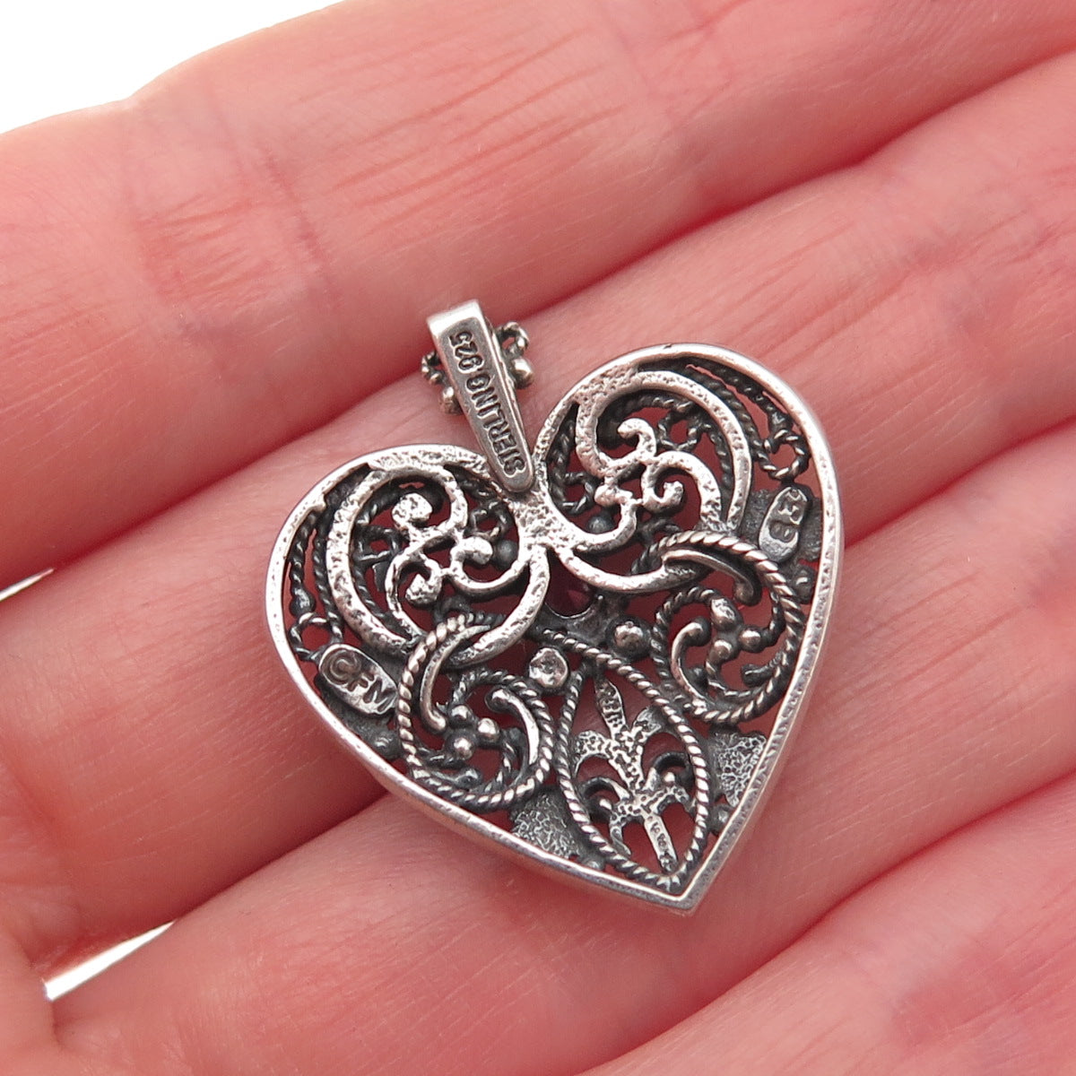 Franklin Mint 925 Sterling Vintage 1983 Real Ruby Heart Oxidized Charm Pendant