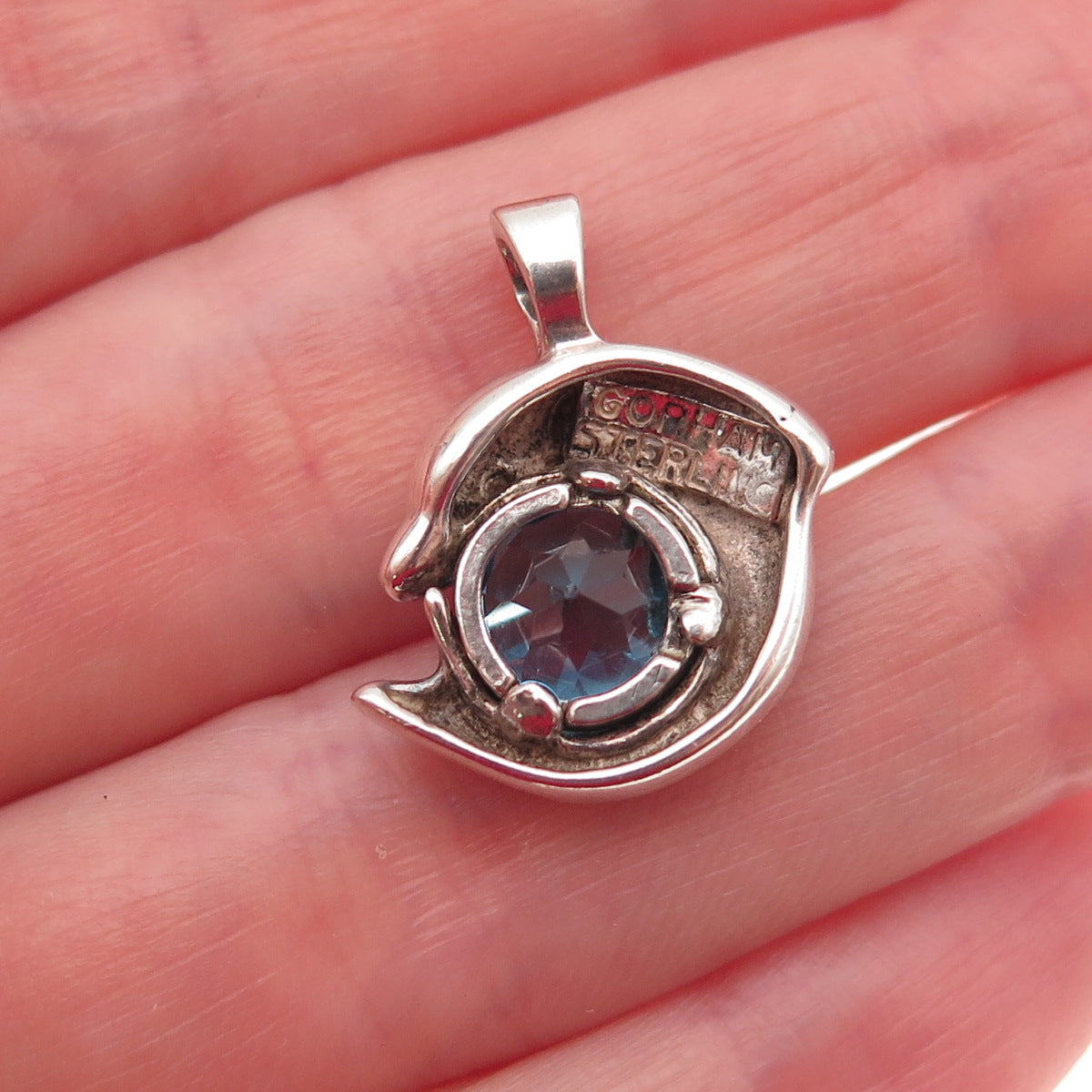Gorham 925 Sterling Vintage Real Diamond Swiss Blue Topaz Dolphin Mini Pendant