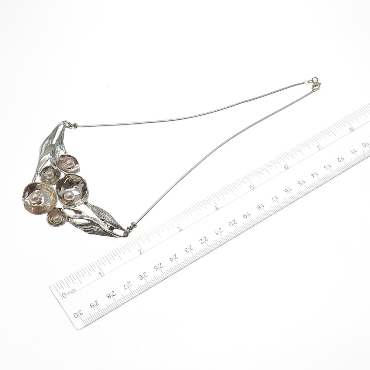 HAGIT GORALI 925 Sterling Vintage Israel Real Pearl Modernist Chain Necklace 16"