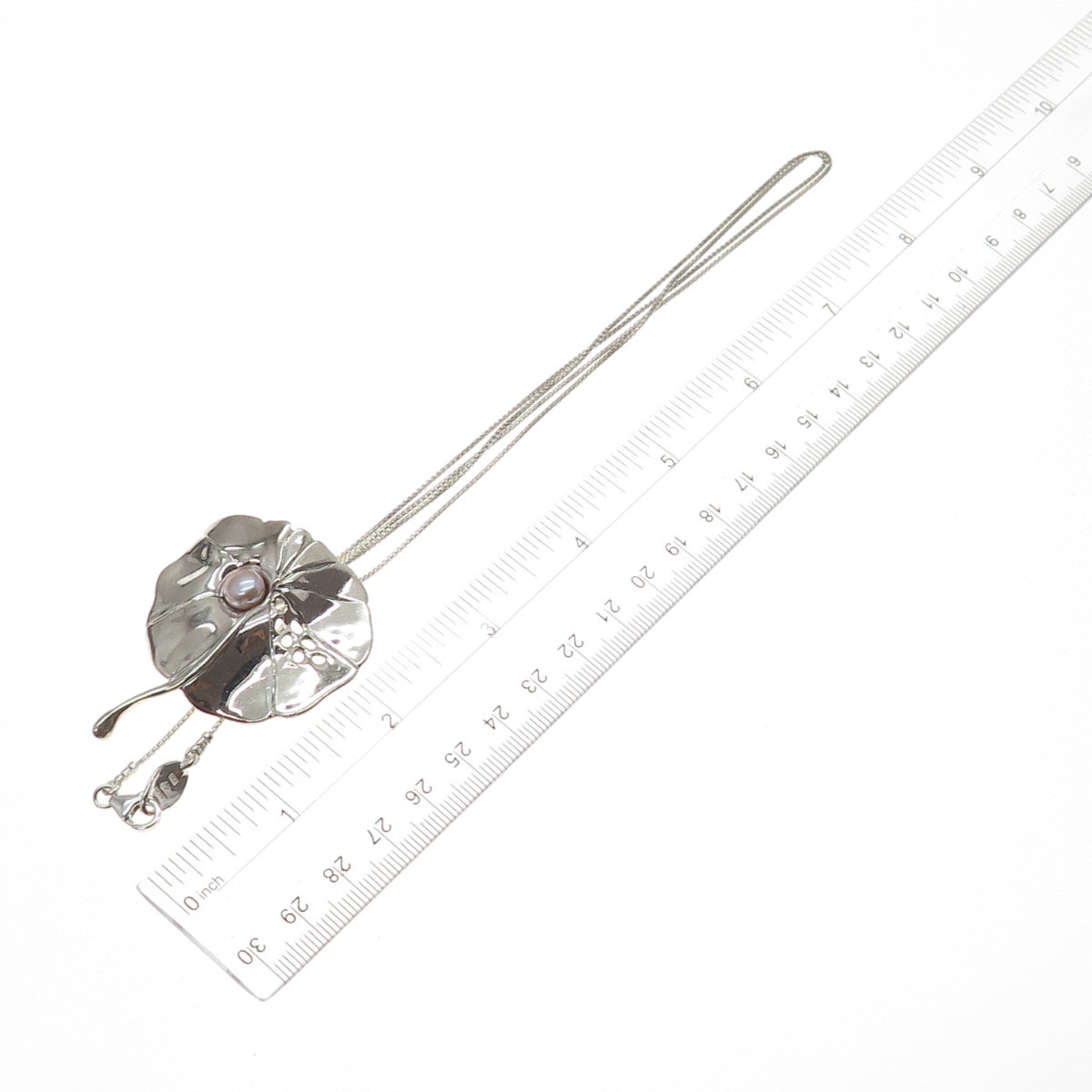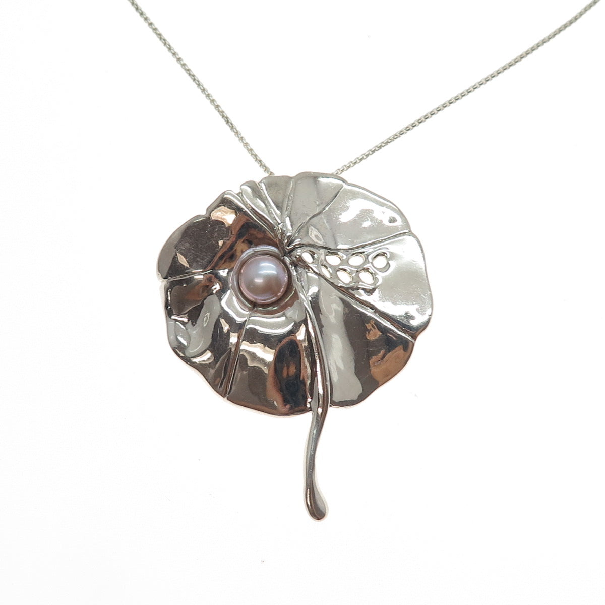 HAGIT GORALI Sterling Vintage Israel Real Pearl Floral Box Chain Necklace 28"