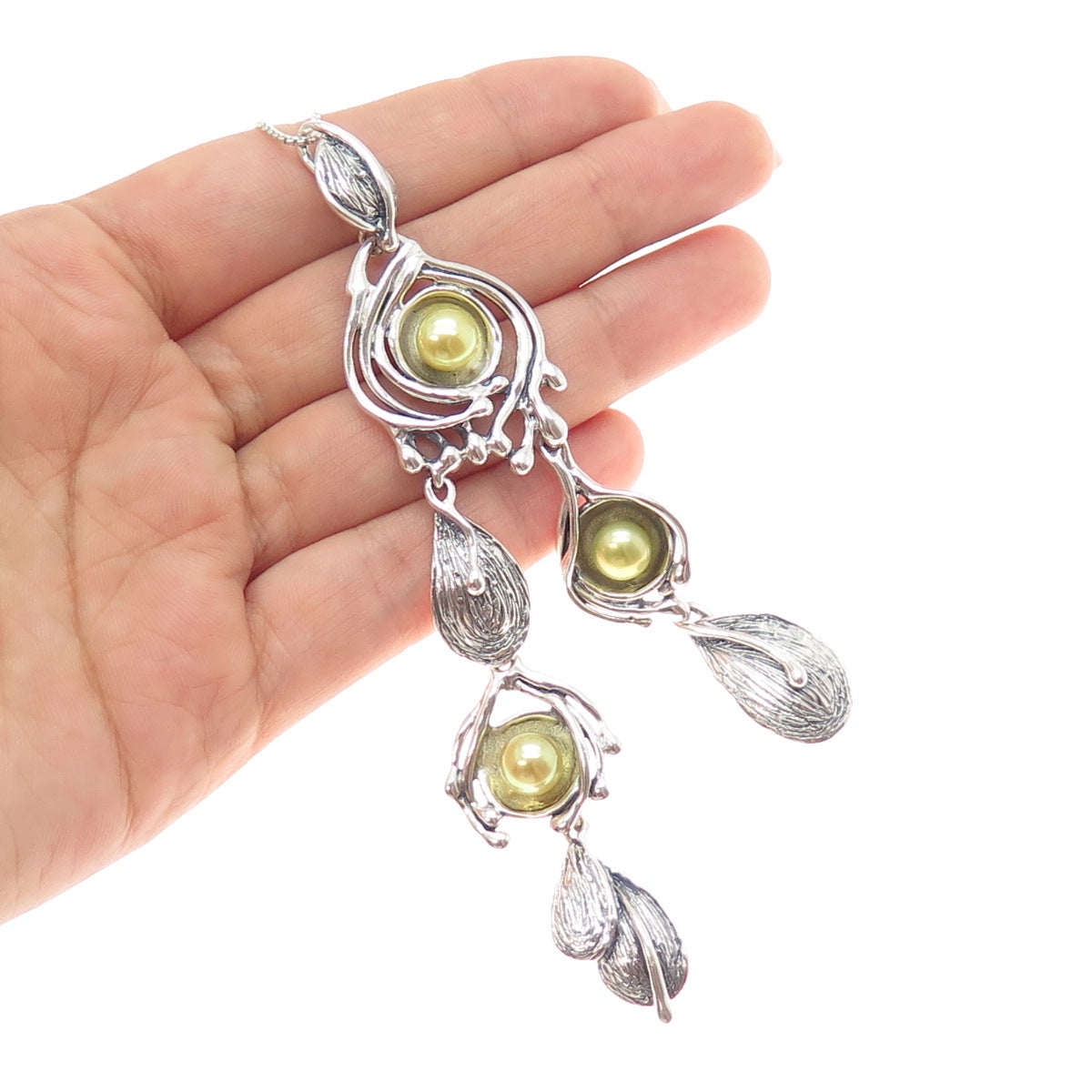 HAGIT GORALI Sterling Vintage Israel Real Pearl Modernist Box Chain Necklace 28"