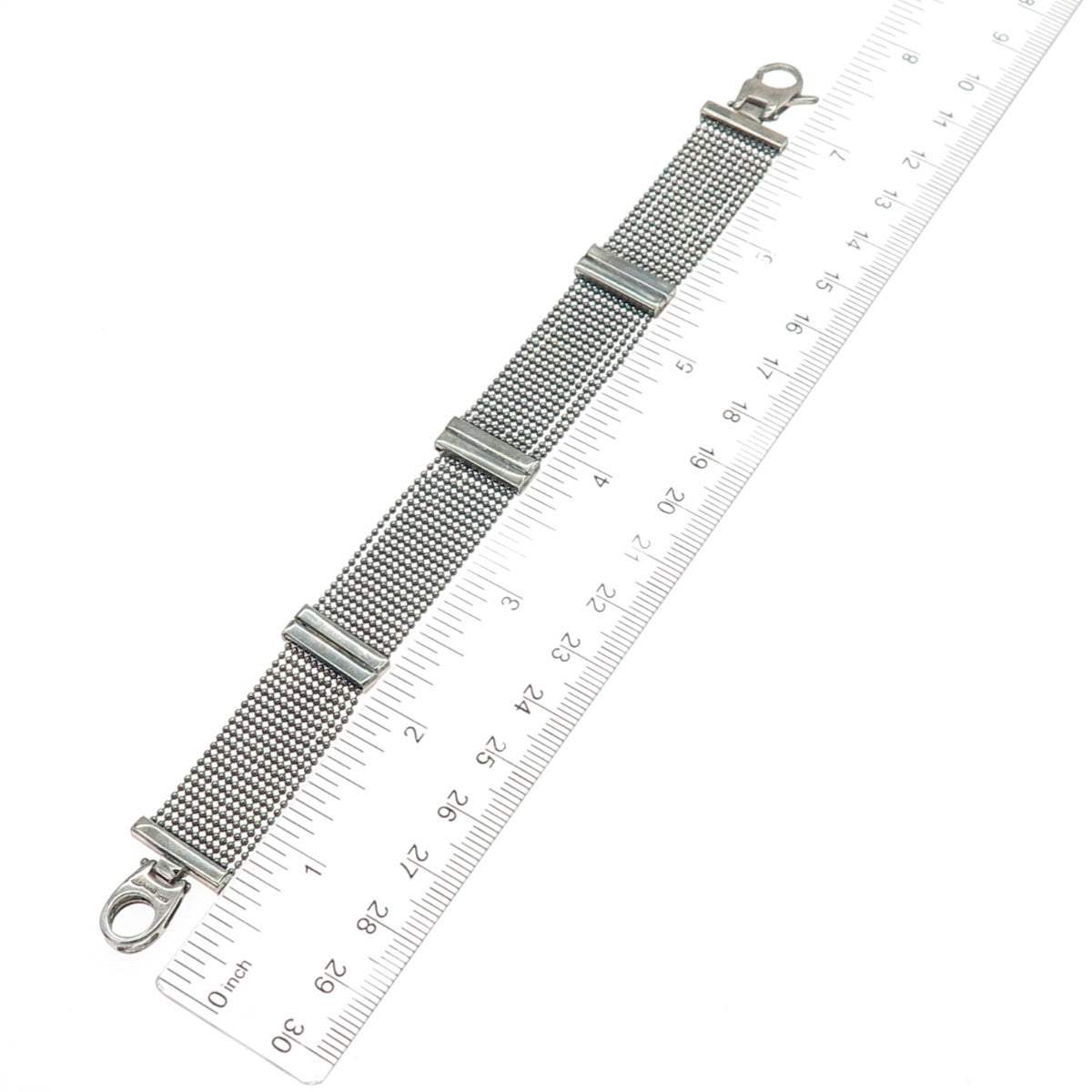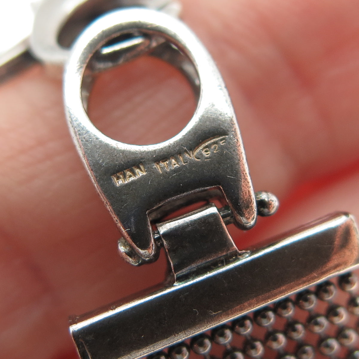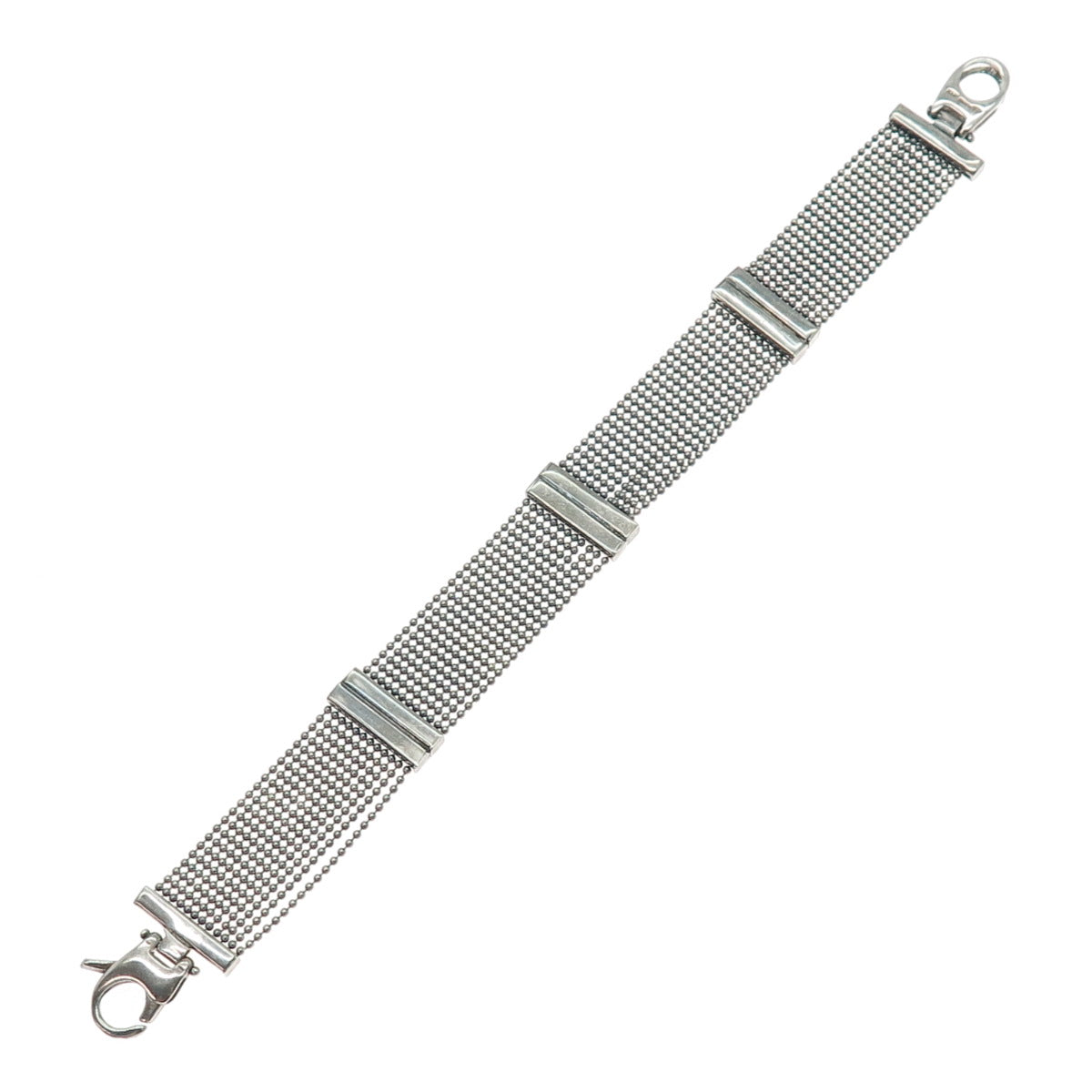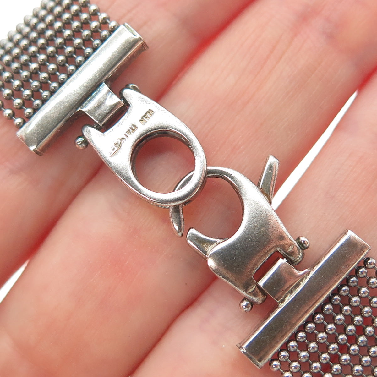 HAN 925 Sterling Silver Vintage Italy Oxidized Beaded Mesh Link Bracelet 7.25"