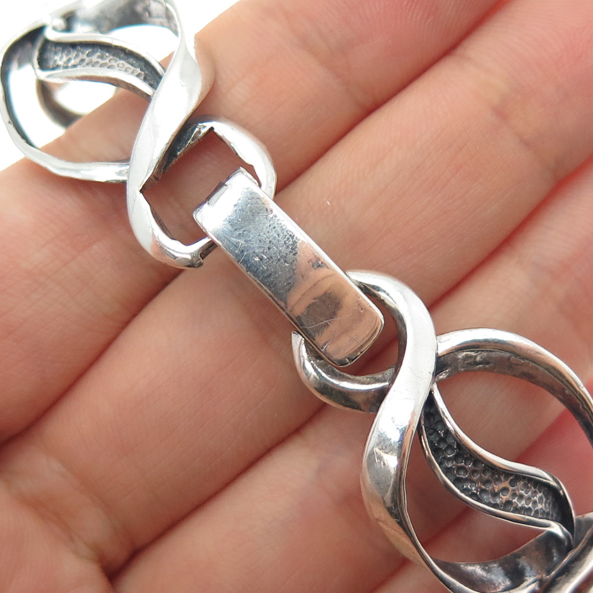 Industria Argentina Sterling Silver Vintage Modernist Oxidized Bracelet 6.75"