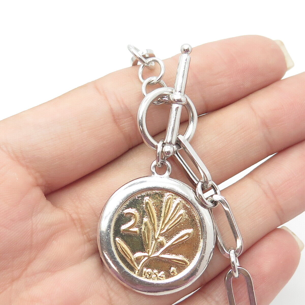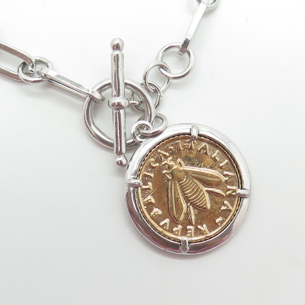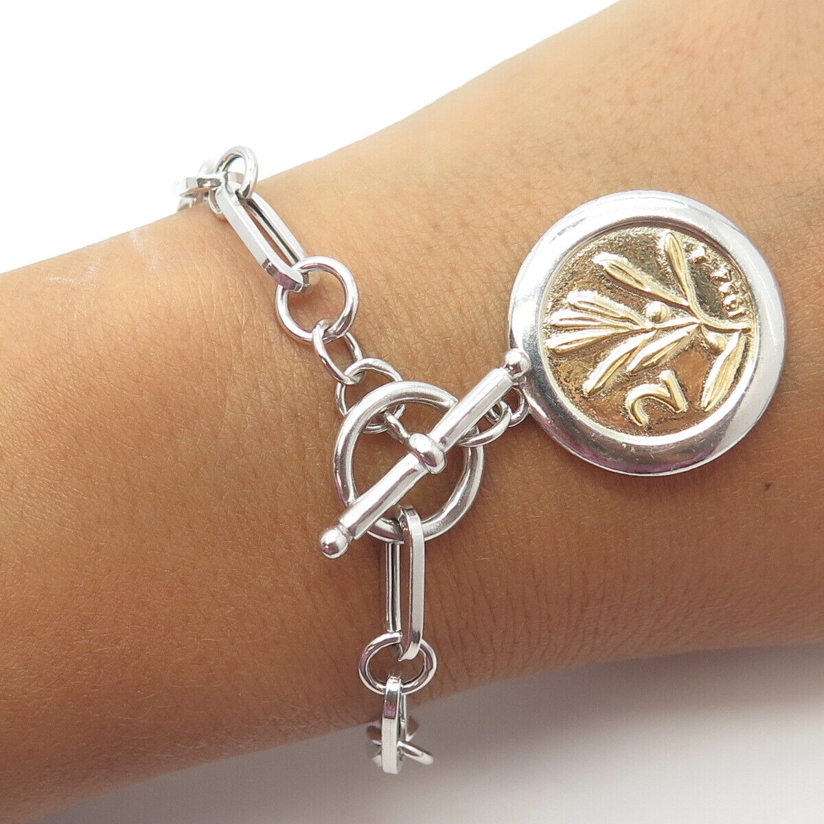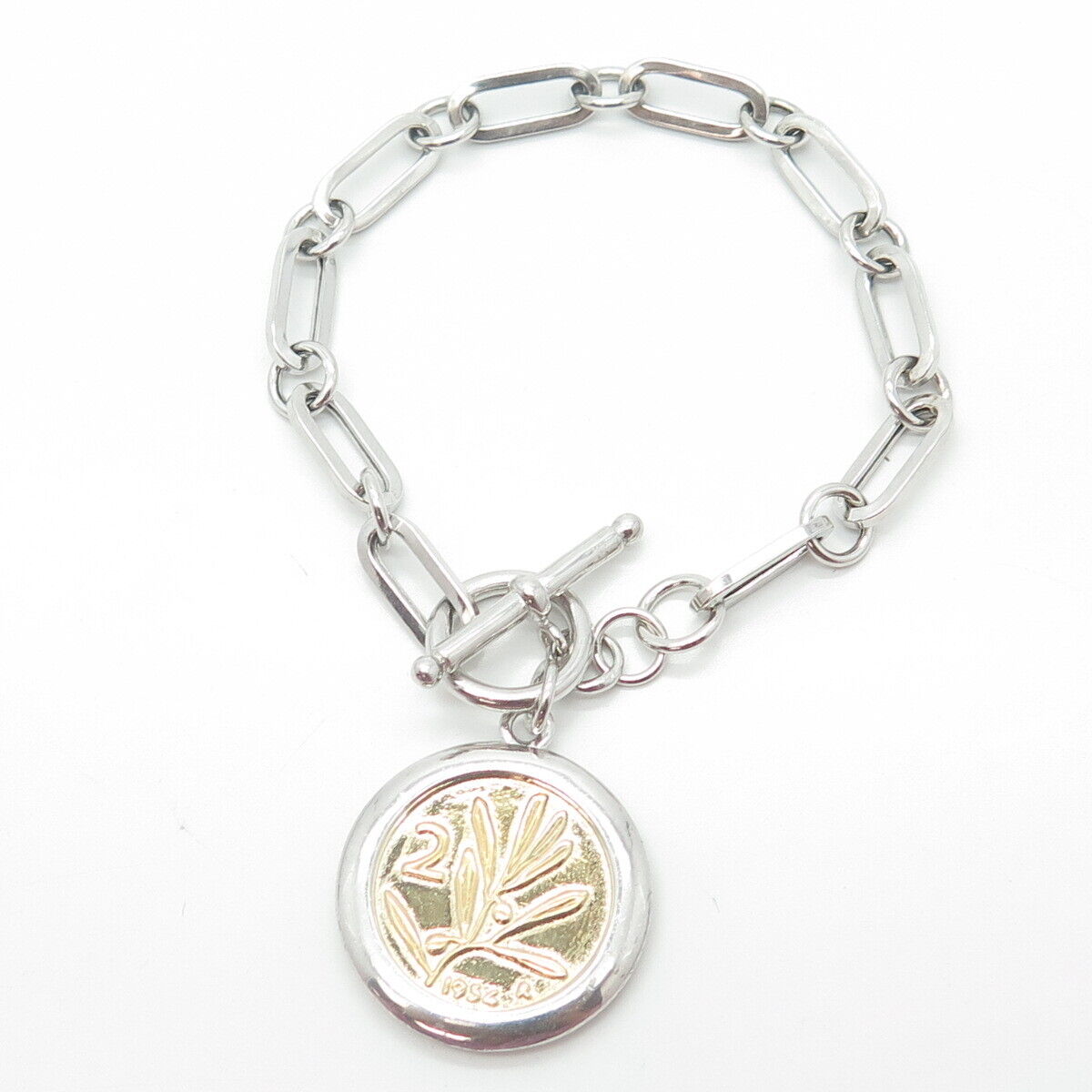 JACMEL JEWELRY INC. 925 Sterling Silver 2-Tone Vintage Mixed Link Bracelet 6.5"