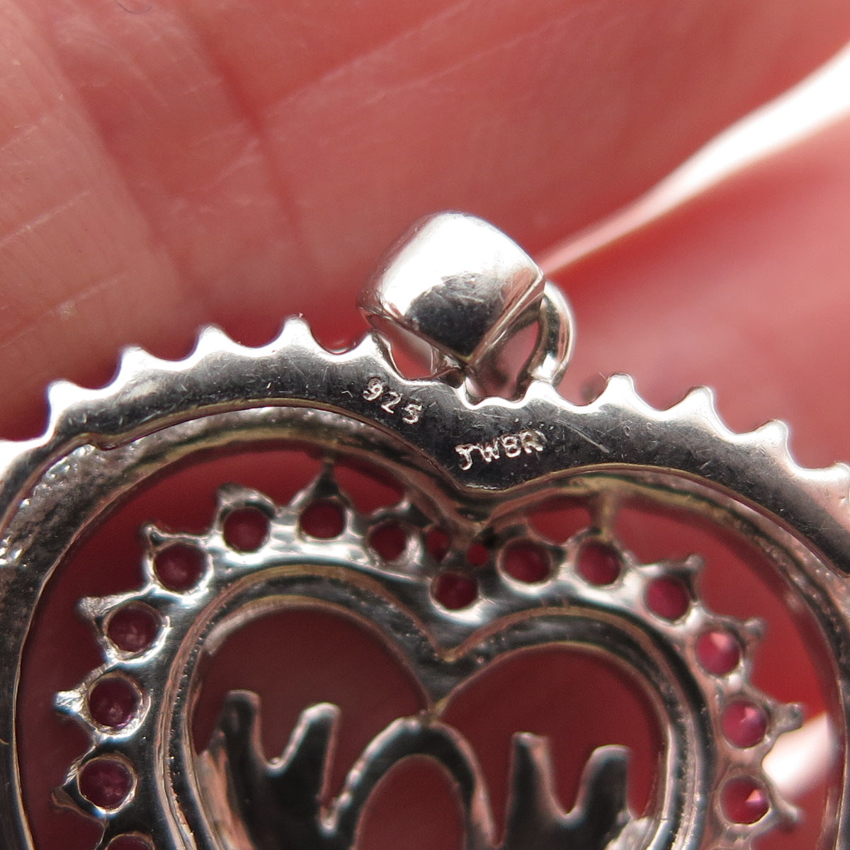 JANE SEYMOUR Sterling Silver Real Pink Sapphire & White Topaz Mom Heart Pendant