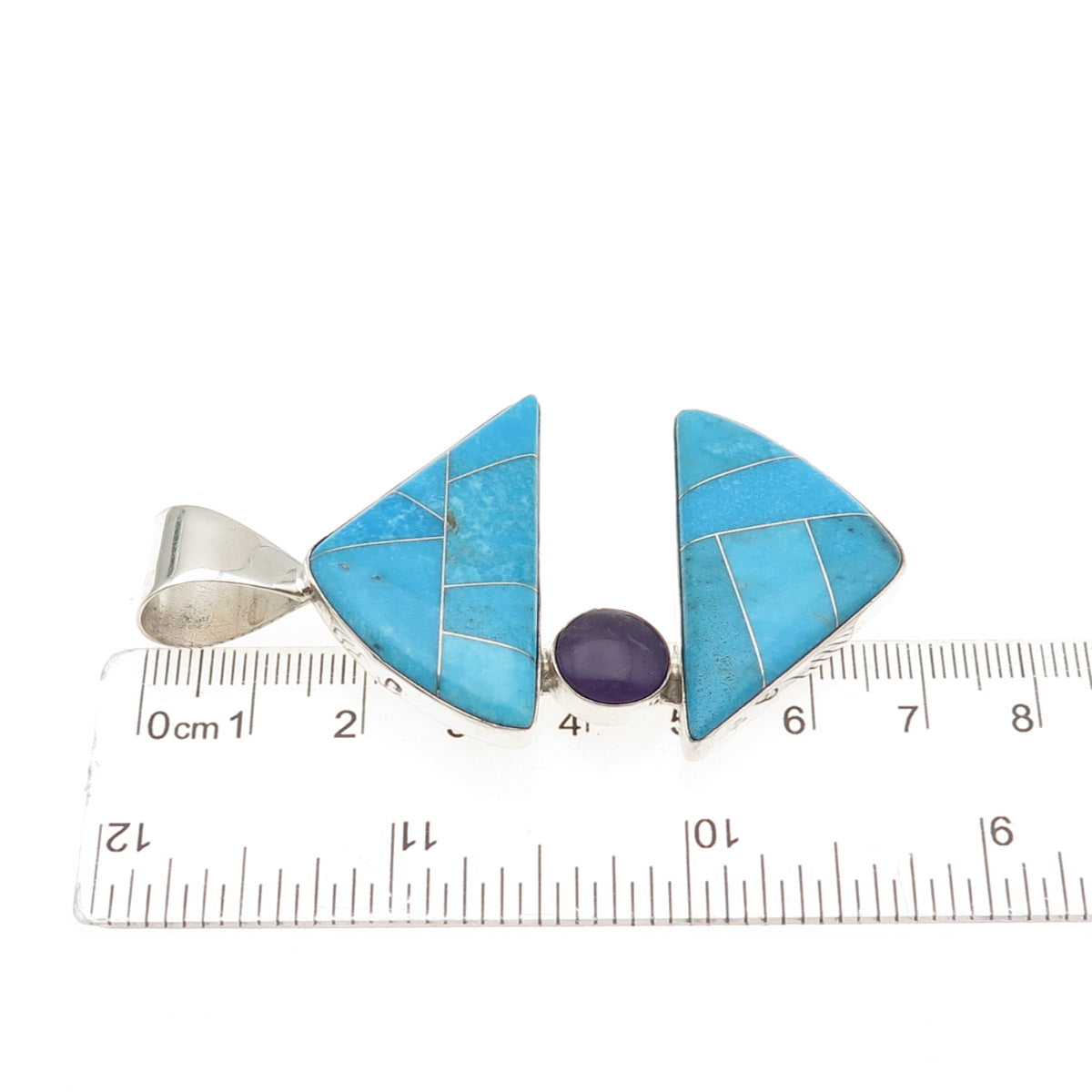 Jay King Desert Rose 925 Sterling Silver Vintage Real Turquoise Amethyst Pendant