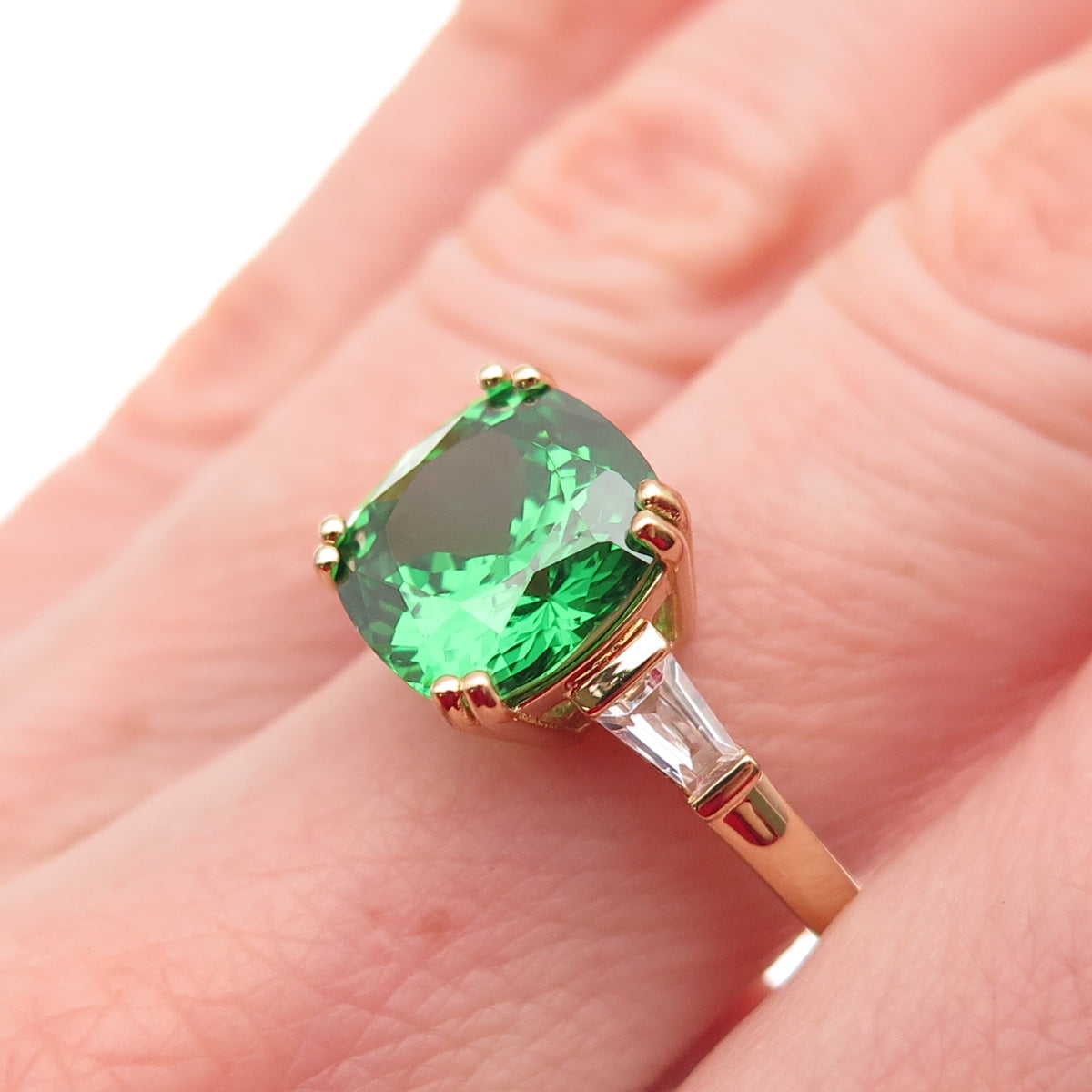 JCL Colleen Lopez 925 Sterling Silver Gold Plated Green & White C Z Ring Size 8