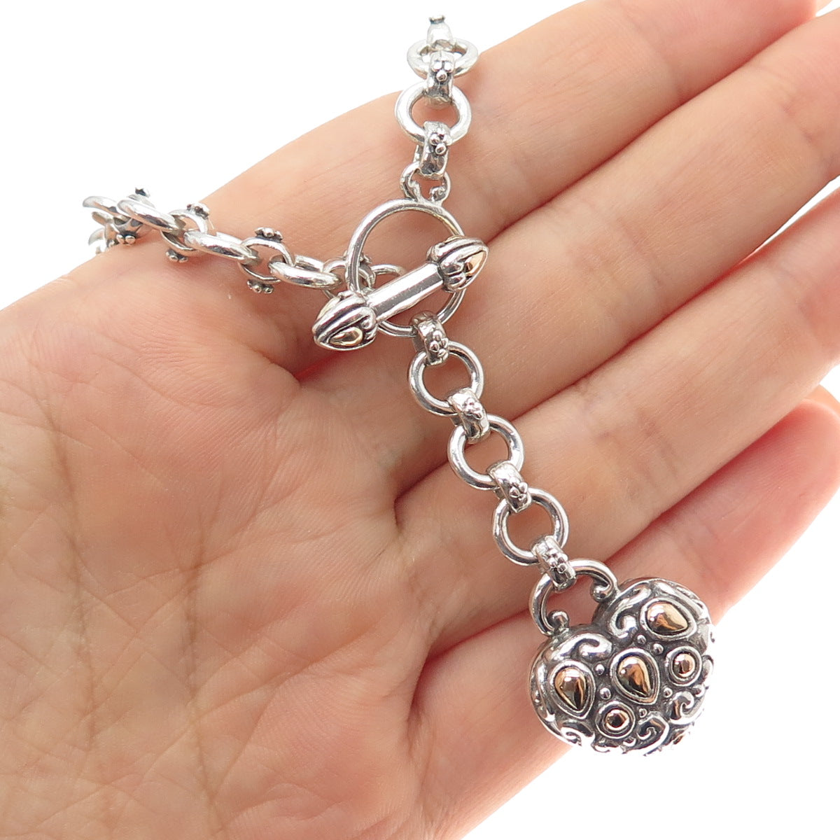 JOHN HARDY 18K Gold 925 Sterling Silver Vintage Heart Rolo Chain Necklace 16"