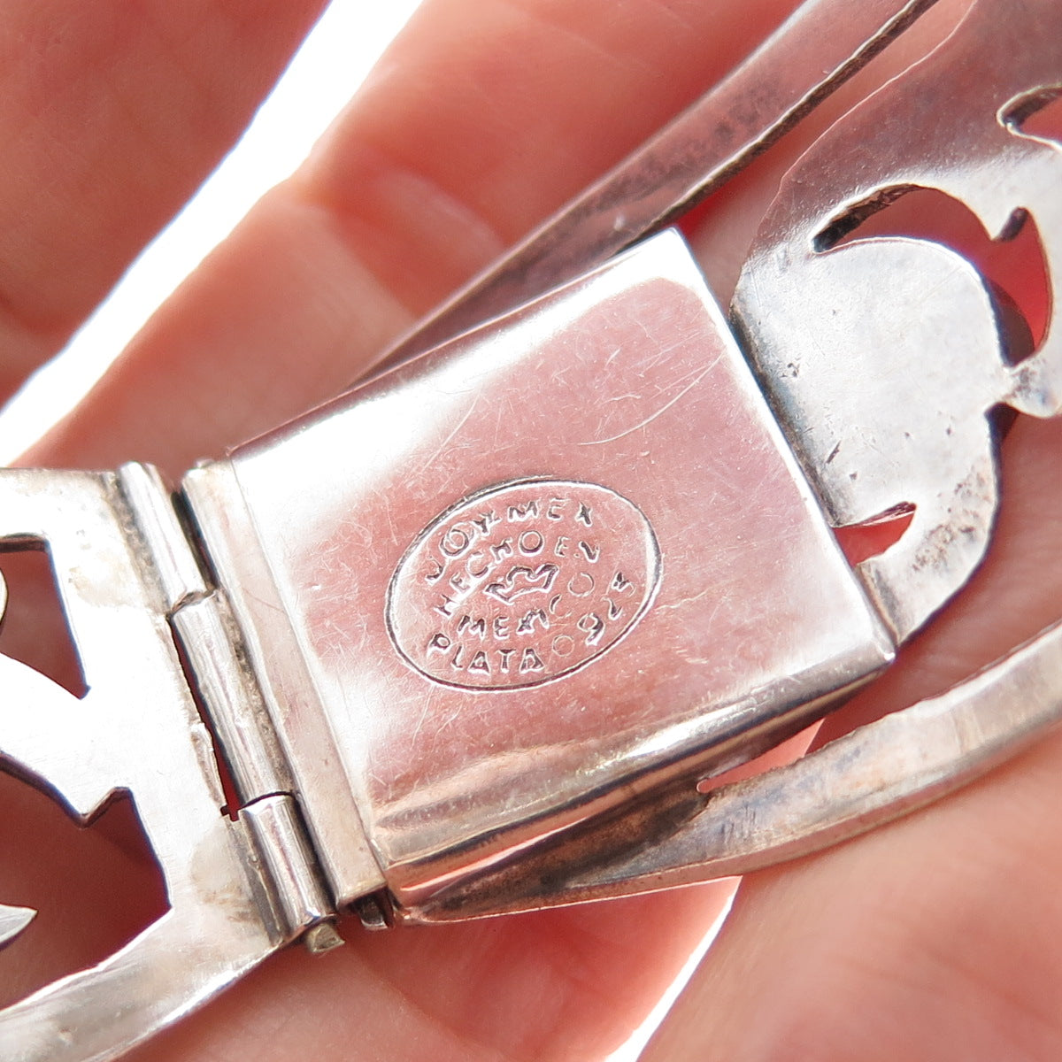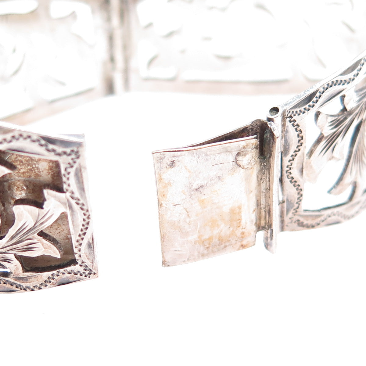 JOY 925 Sterling Silver Vintage Mexico Dragon Breath Opal Floral Bracelet 7.25"