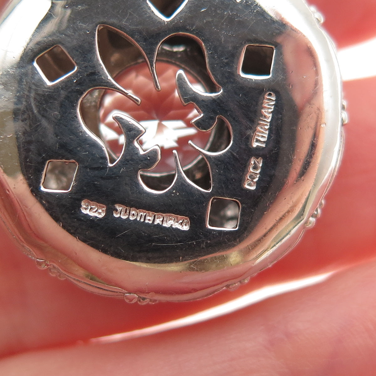 Judith Ripka 925 Sterling Silver Real Blue Topaz & C Z Round Disc Pendant