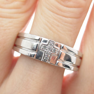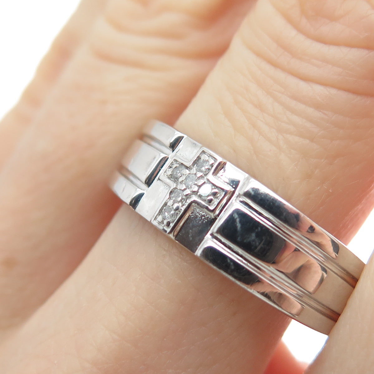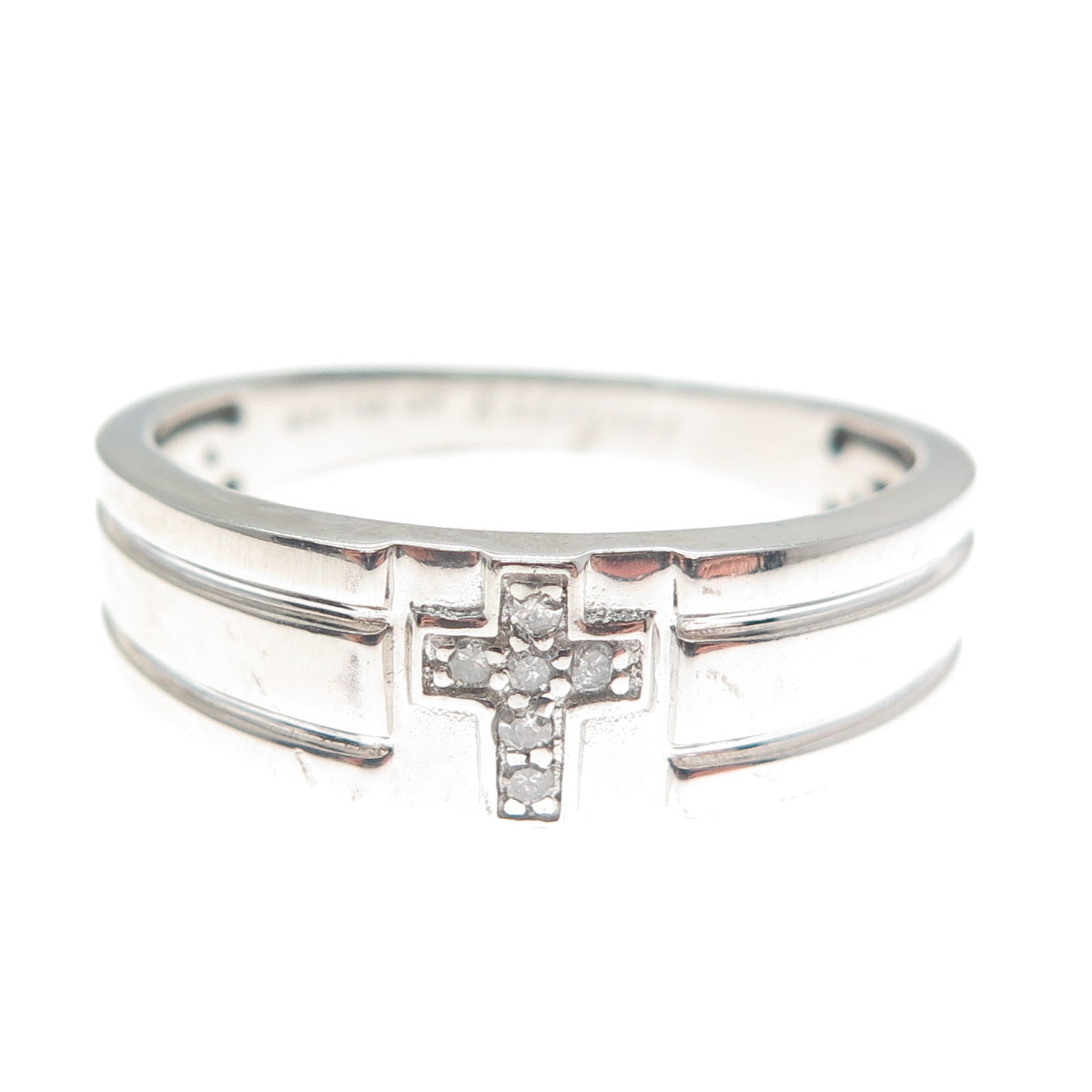 KEEPSAKE 925 Sterling 14K White Gold Plated Real Diamond Cross Ring Size 11.25