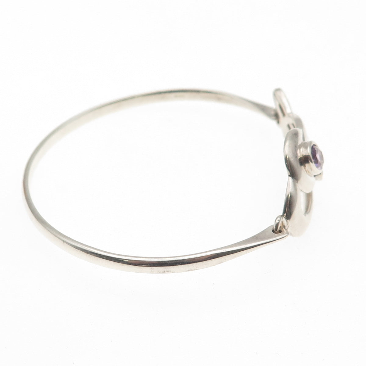 KIT HEATH Sterling Vintage 1990 Real Amethyst Modernist Bangle Bracelet 6.75"