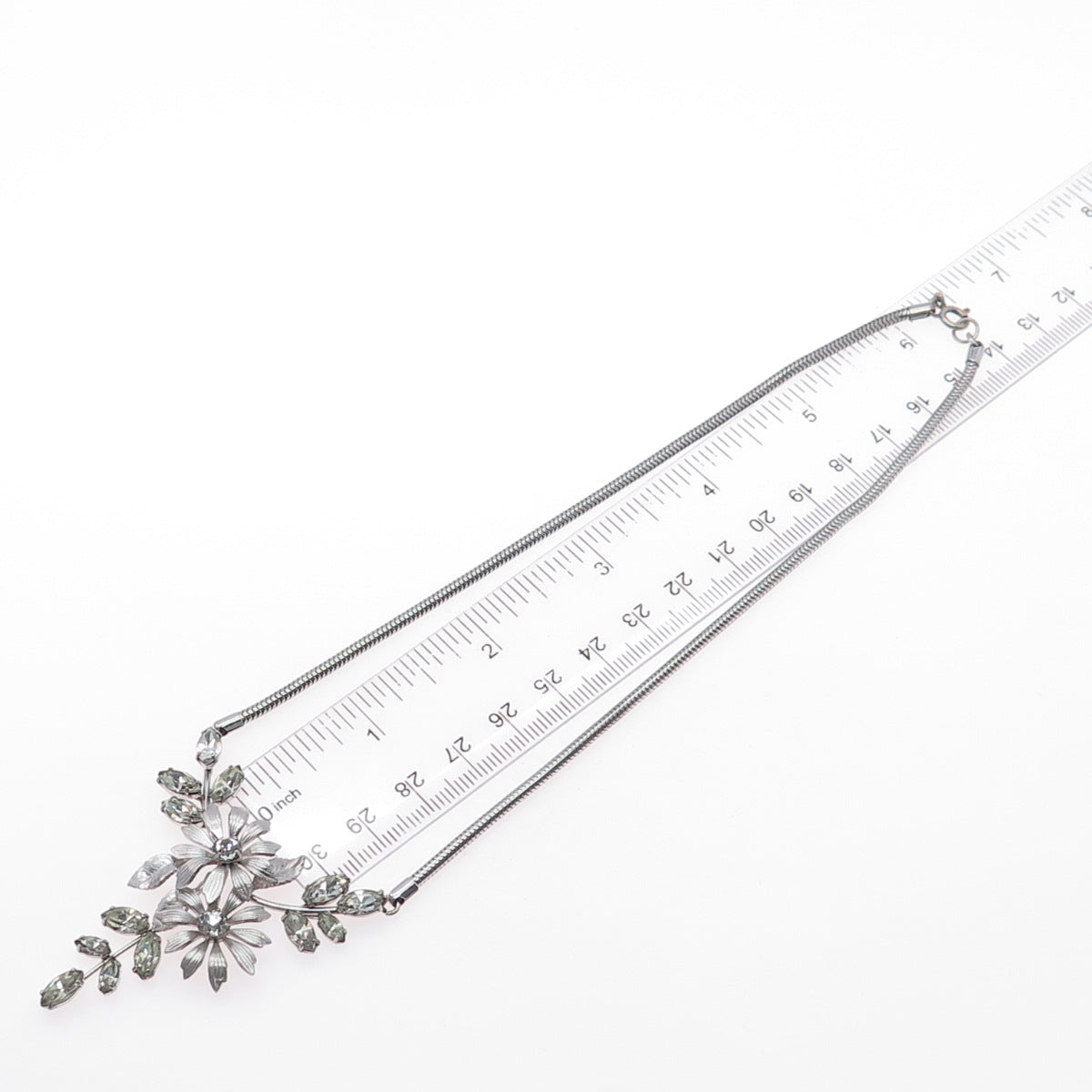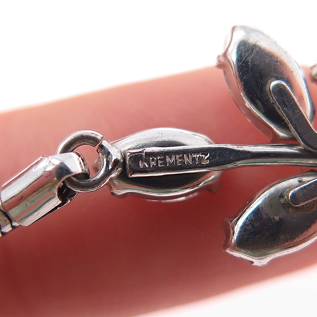 KREMENTZ 925 Sterling Silver Vintage Rhinestone Flower Snake Chain Necklace 16"