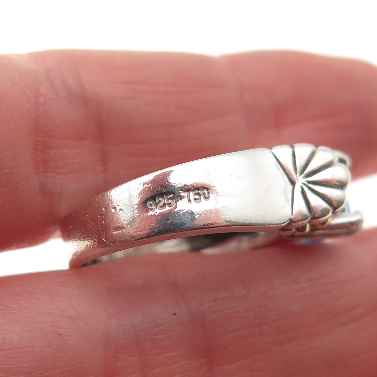 LAGOS Caviar 925 Sterling Silver 18K Gold Vintage Real Blue Topaz Ring Size 8.5