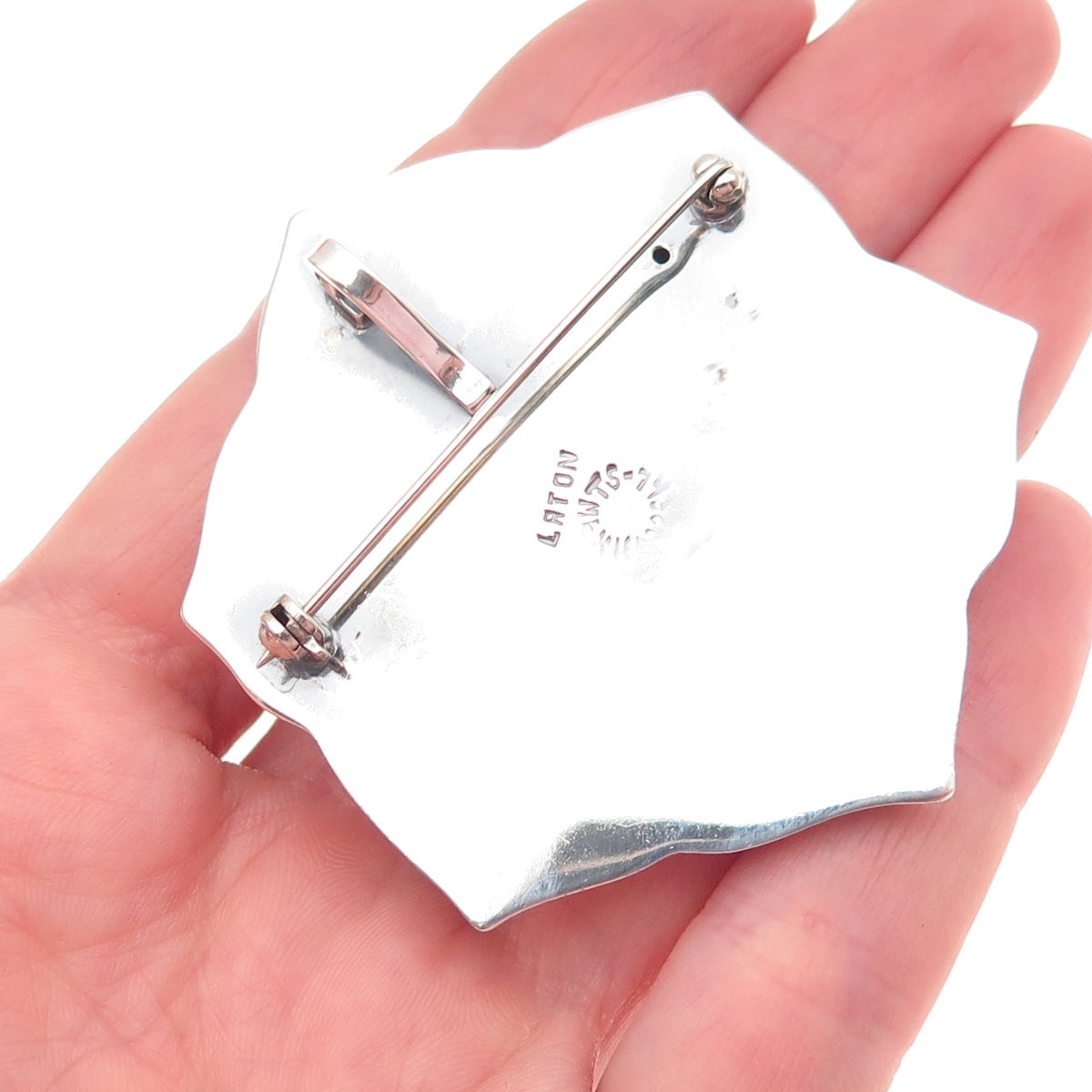 LATON 925 Sterling 2-Tone Vintage Mexico Modernist Flower Pin Brooch / Pendant