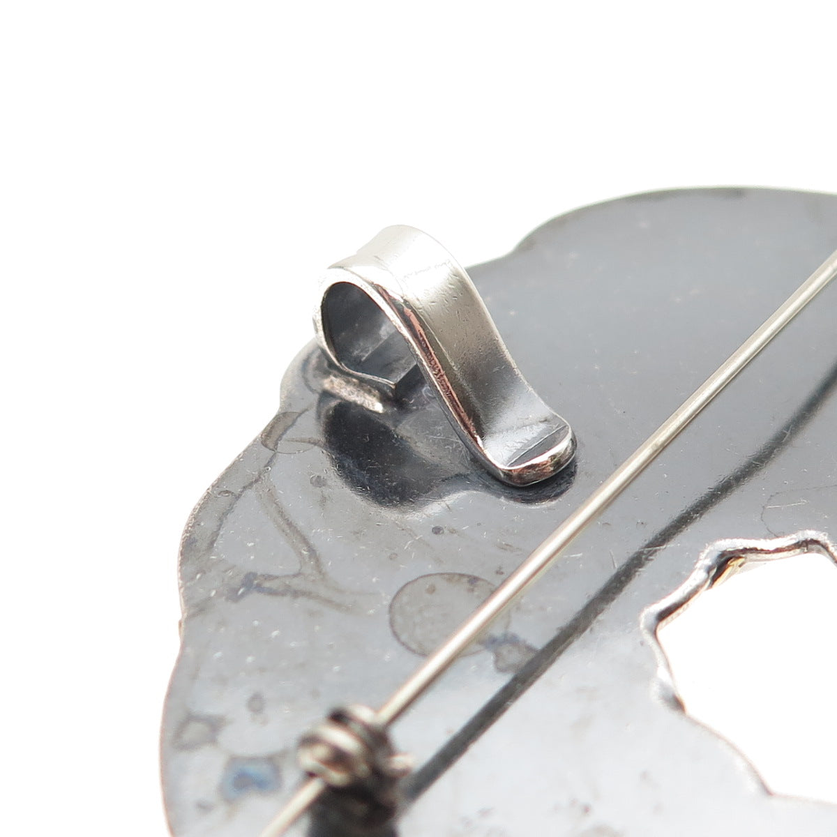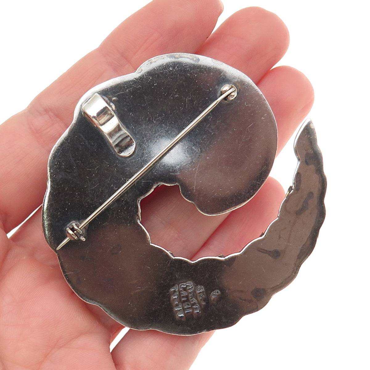 LATON 925 Sterling Silver 2-Tone Vintage Mexico Ribbed Spiral Pin Brooch Pendant