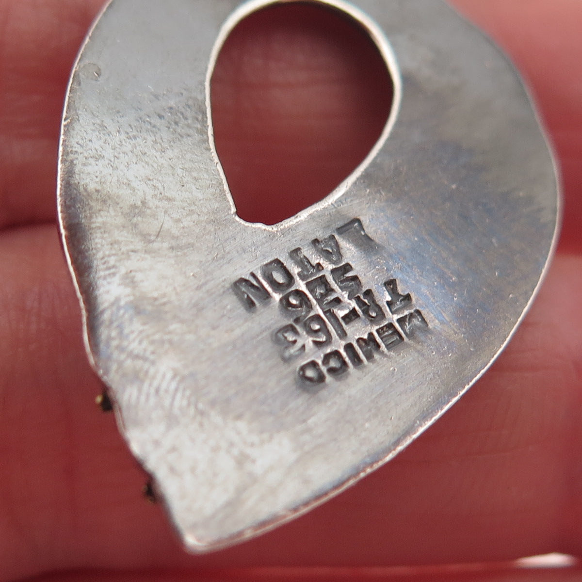 LATON Sterling Silver 2-Tone Vintage Mexico Modernist Oxidized Dangle Earrings