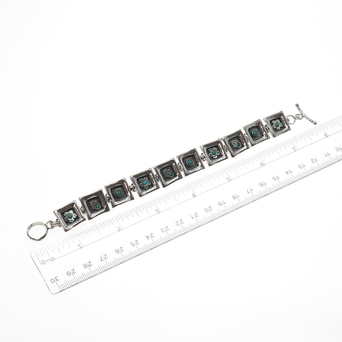 LIOR 925 Sterling Silver Vintage Real Turquoise Hamsa & Flower Bracelet 7.25"