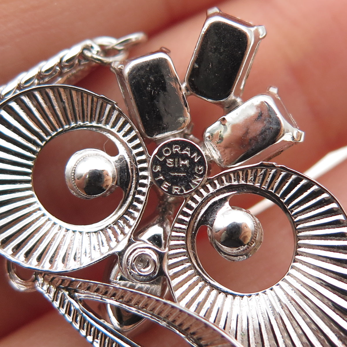 LORAN SIM 925 Sterling Silver Antique Art Deco Rhinestone Chain Necklace 16"