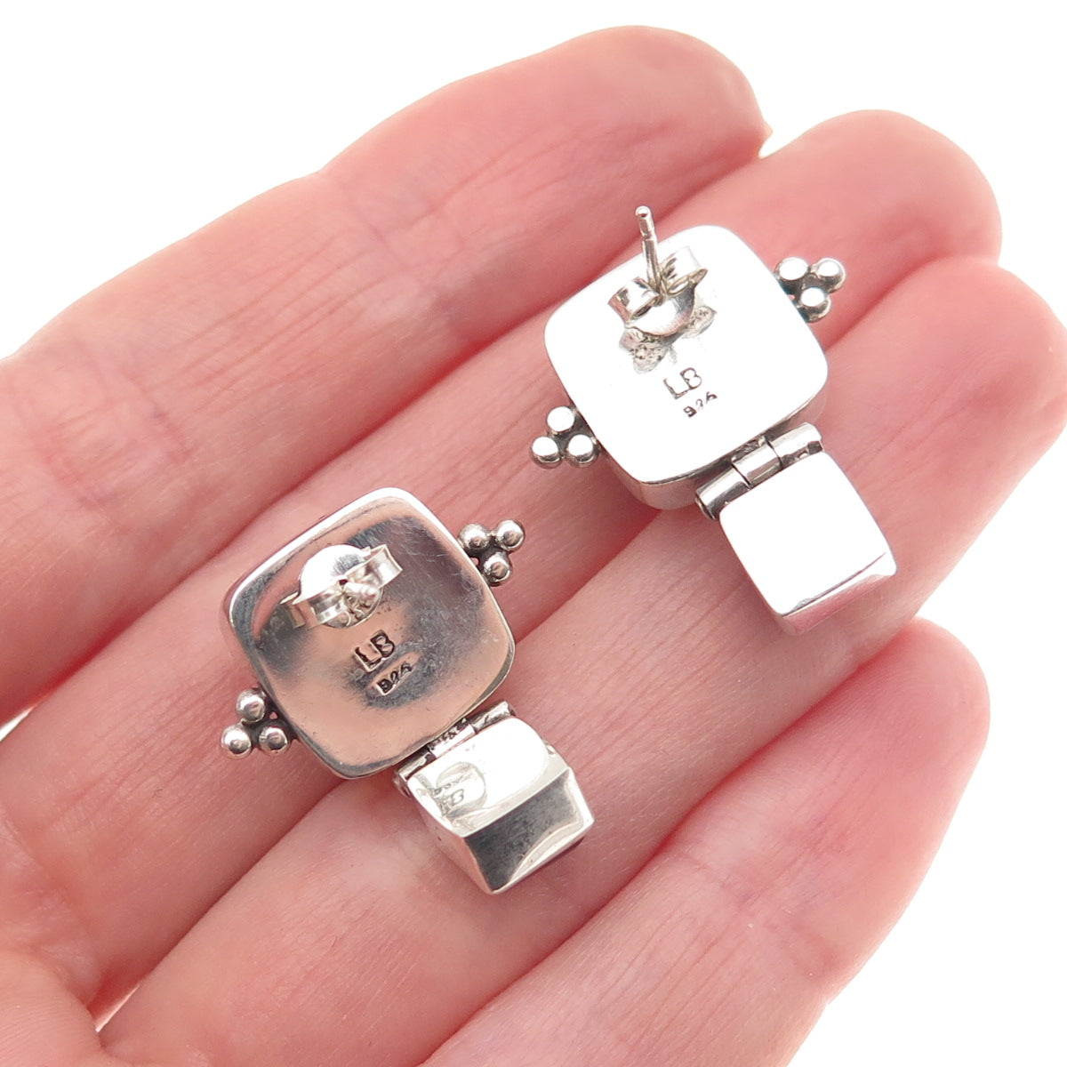 Lori Bonn 925 Sterling Silver Vintage Real Amber & Amethyst Modernist Earrings