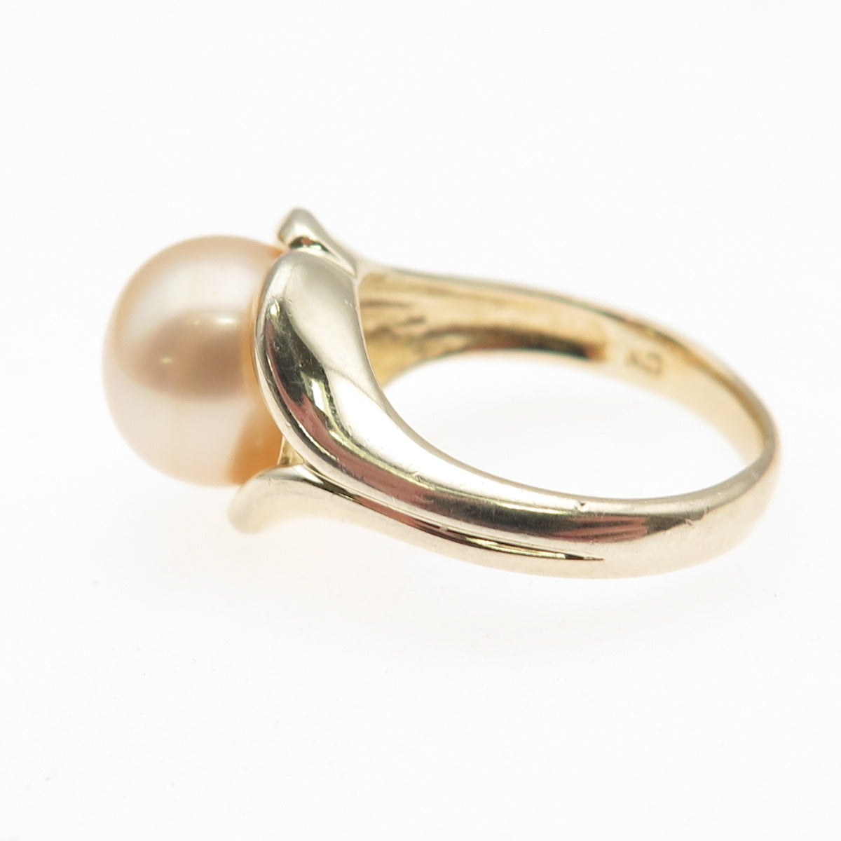 LUCAS LAMETH 925 Sterling Silver Gold Plated Vintage Real Pearl Ring Size 5