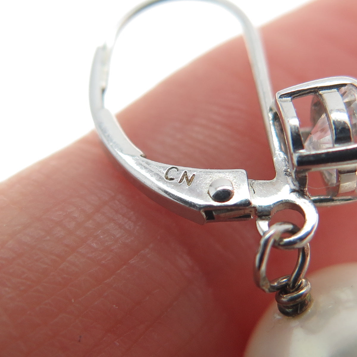 LUCAS LAMETH LUC 925 Sterling Silver Real Pearl & C Z Dangle Earrings