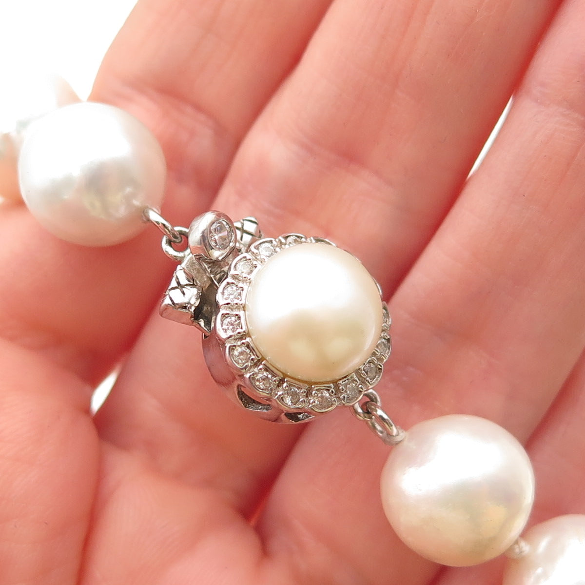 LUCAS LAMETH Sterling Silver Vintage Rhinestone Real Pearl Beaded Necklace 18"