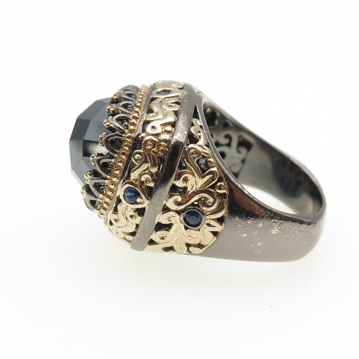 MICHAEL VALITUTTI Gems En Vogue Sterling 2-Tone Sapphire Hematite Ring Size 7.25