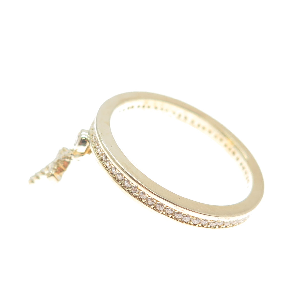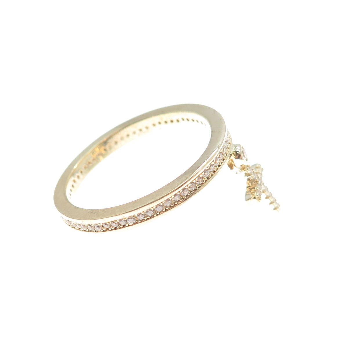 MILOR 925 Sterling Silver Gold Plated Italy C Z Cross Dangle Charm Ring Size 10