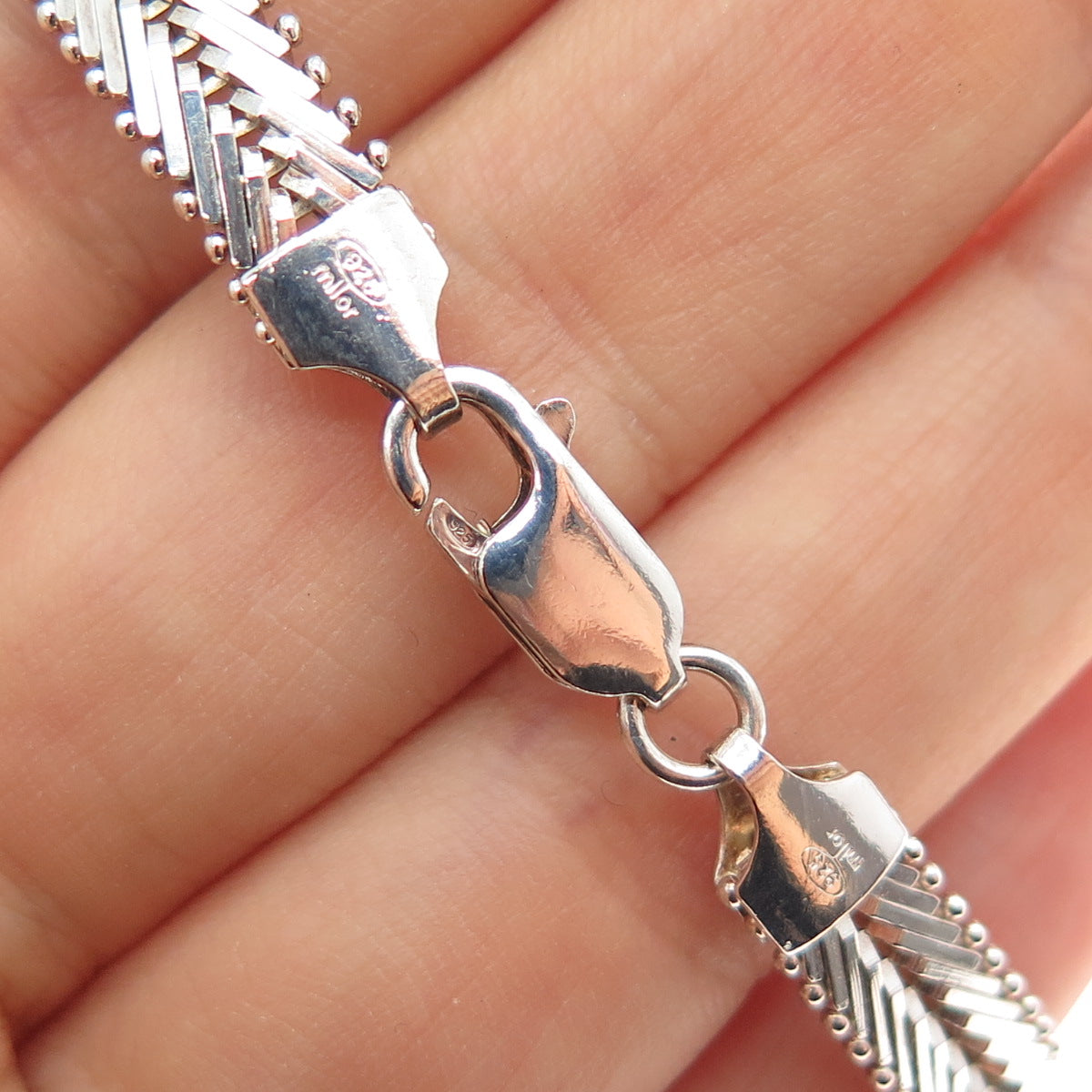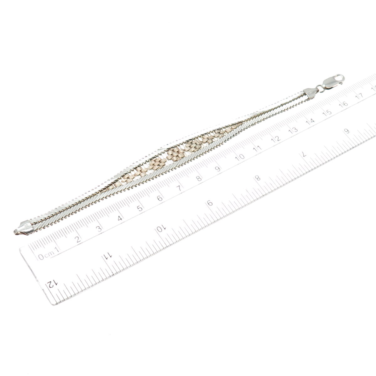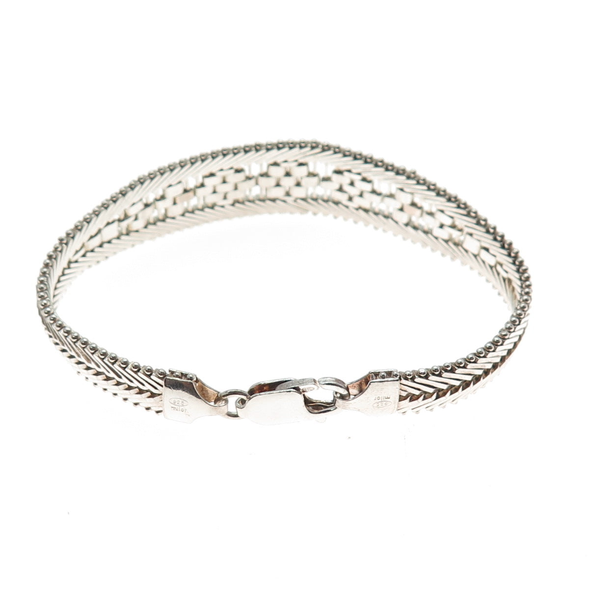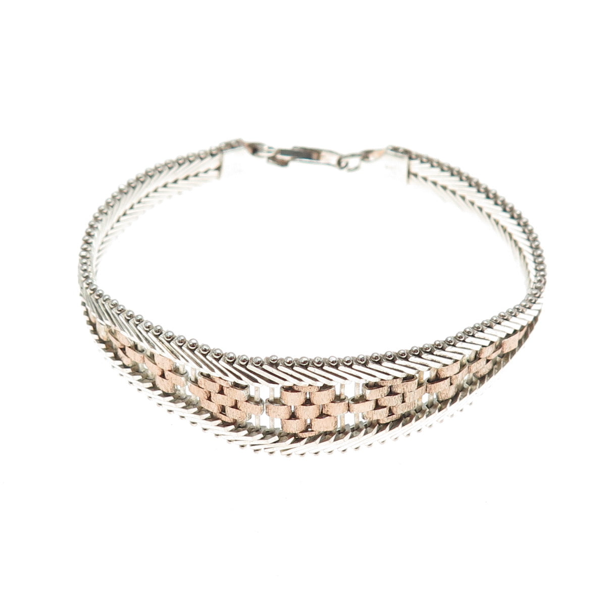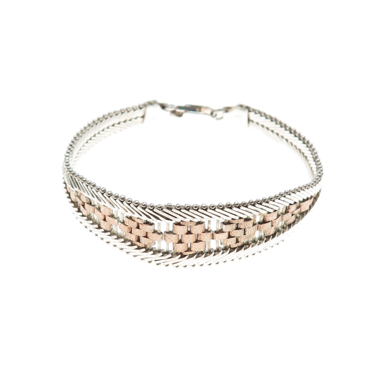 MILOR Sterling Silver 2-Tone Vintage Italy Riccio Chevron Link Bracelet 6.75"
