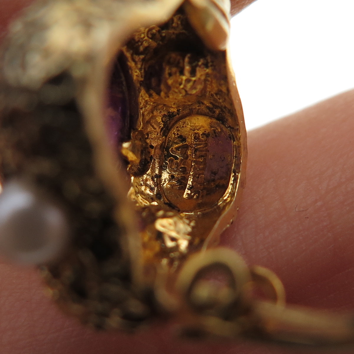 Museum of Fine Arts Sterling Silver GP Vintage Pearl & Amethyst Clip On Earrings