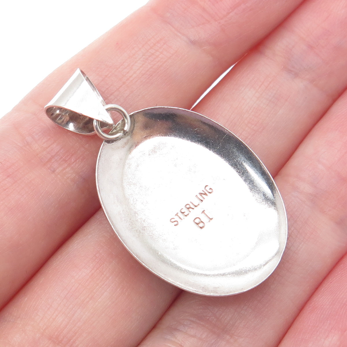 Old Pawn 925 Sterling Silver Vintage BI Southwestern Black Onyx Tribal Pendant