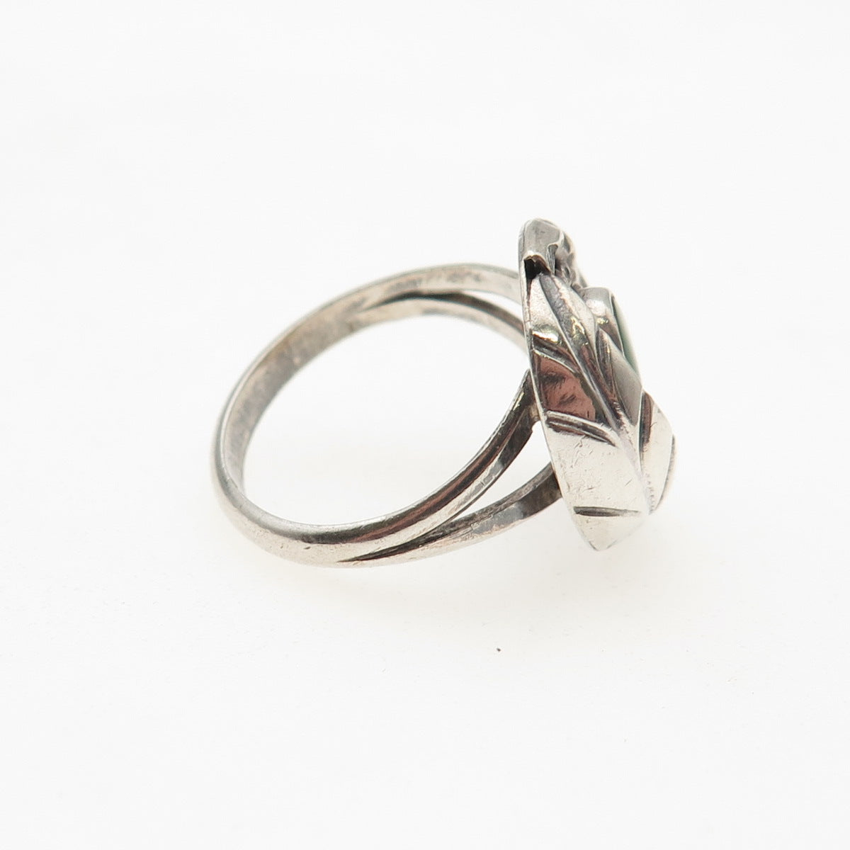 Old Pawn 925 Sterling Silver Vintage Royston Turquoise Feather Ring Size 5.75