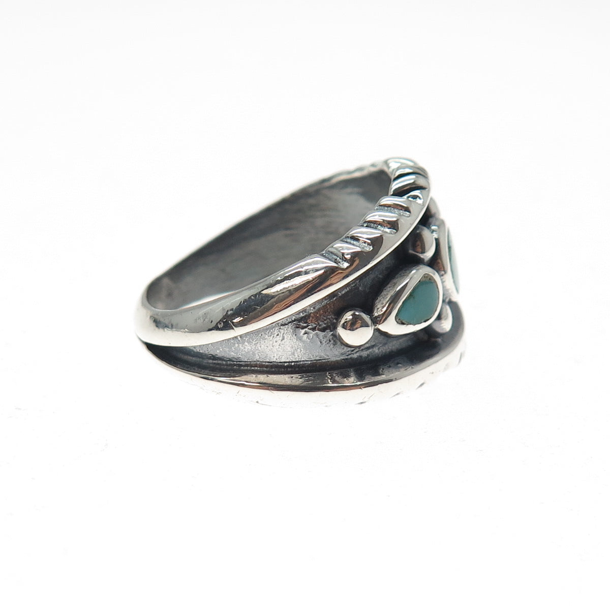 Old Pawn 925 Sterling Silver Vintage Southwestern Kingman Turquoise Ring Size 10