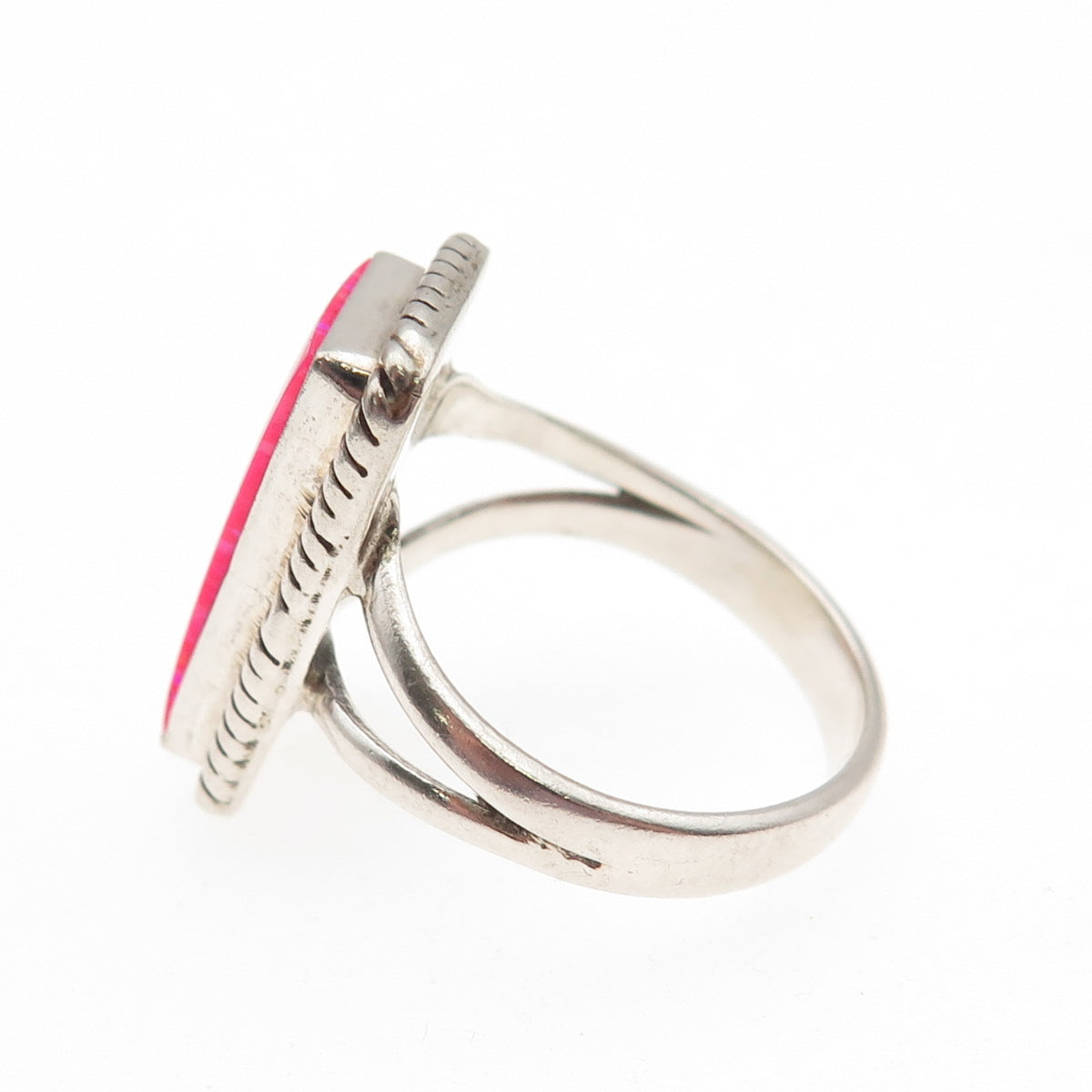 Old Pawn 925 Sterling Silver Vintage Southwestern Pink Opal Tribal Ring Size 9