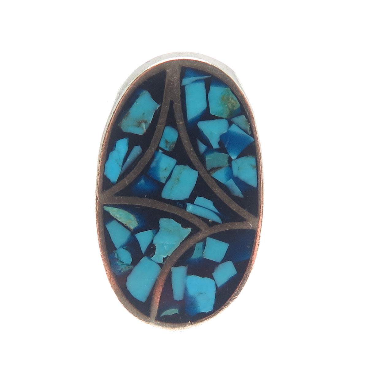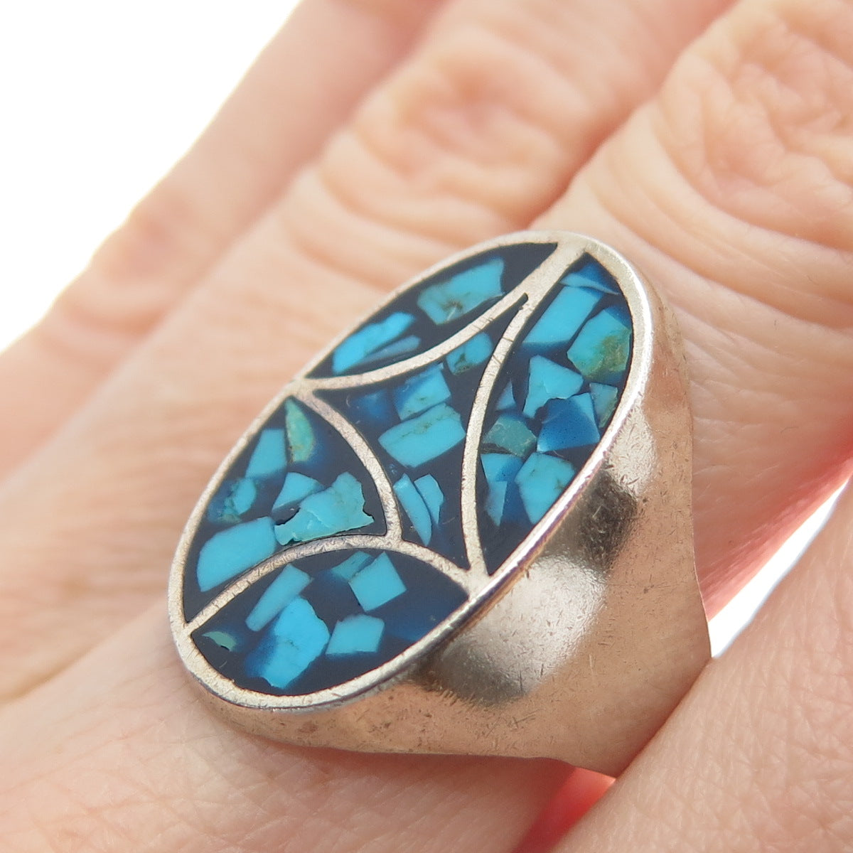 Old Pawn 925 Sterling Silver Vintage Southwestern Turquoise Inlay Ring Size 8.5