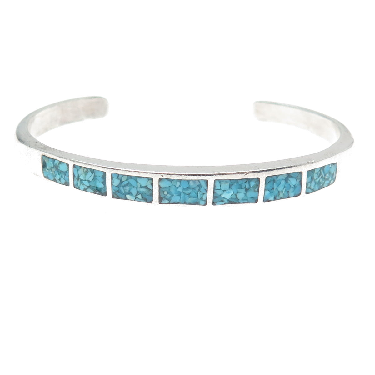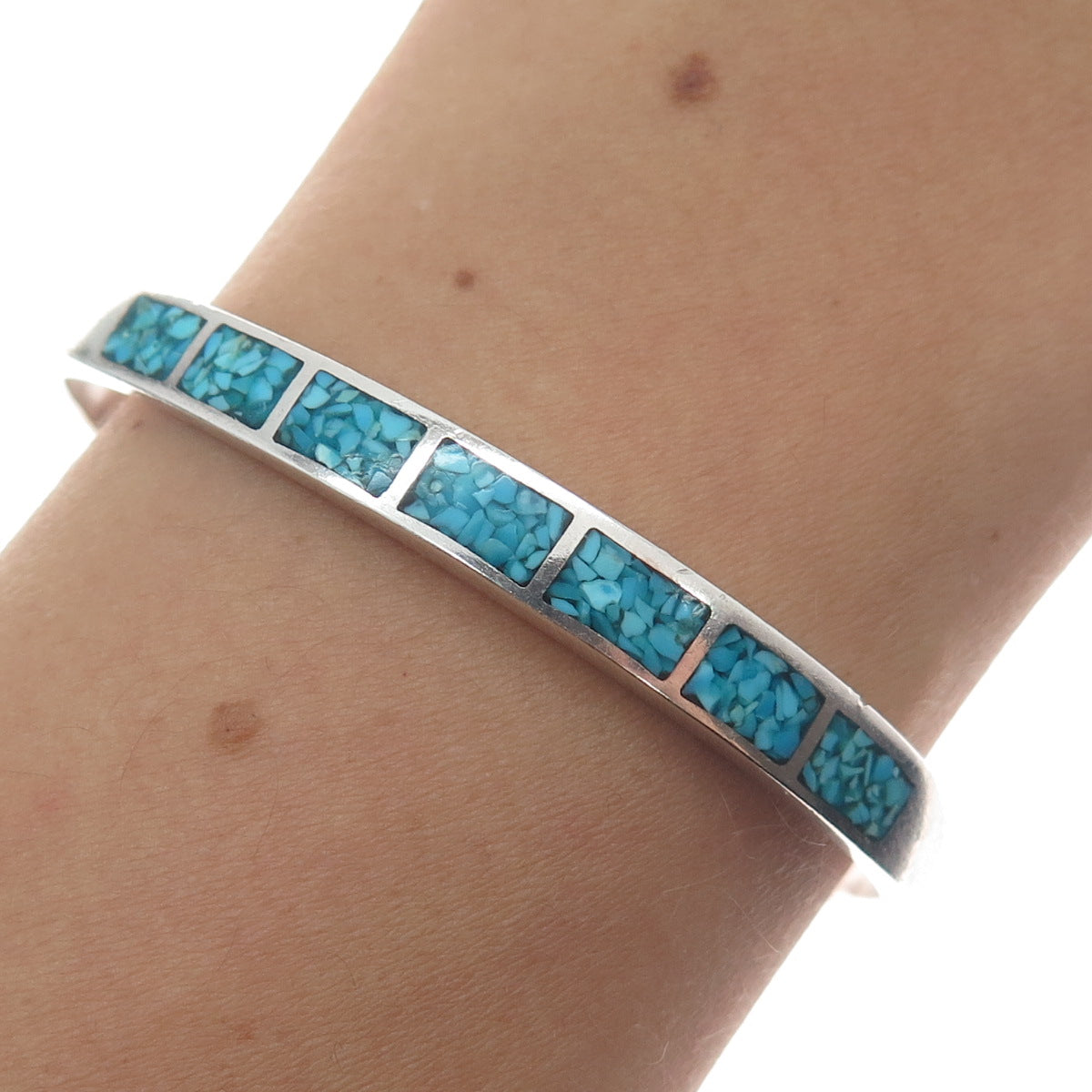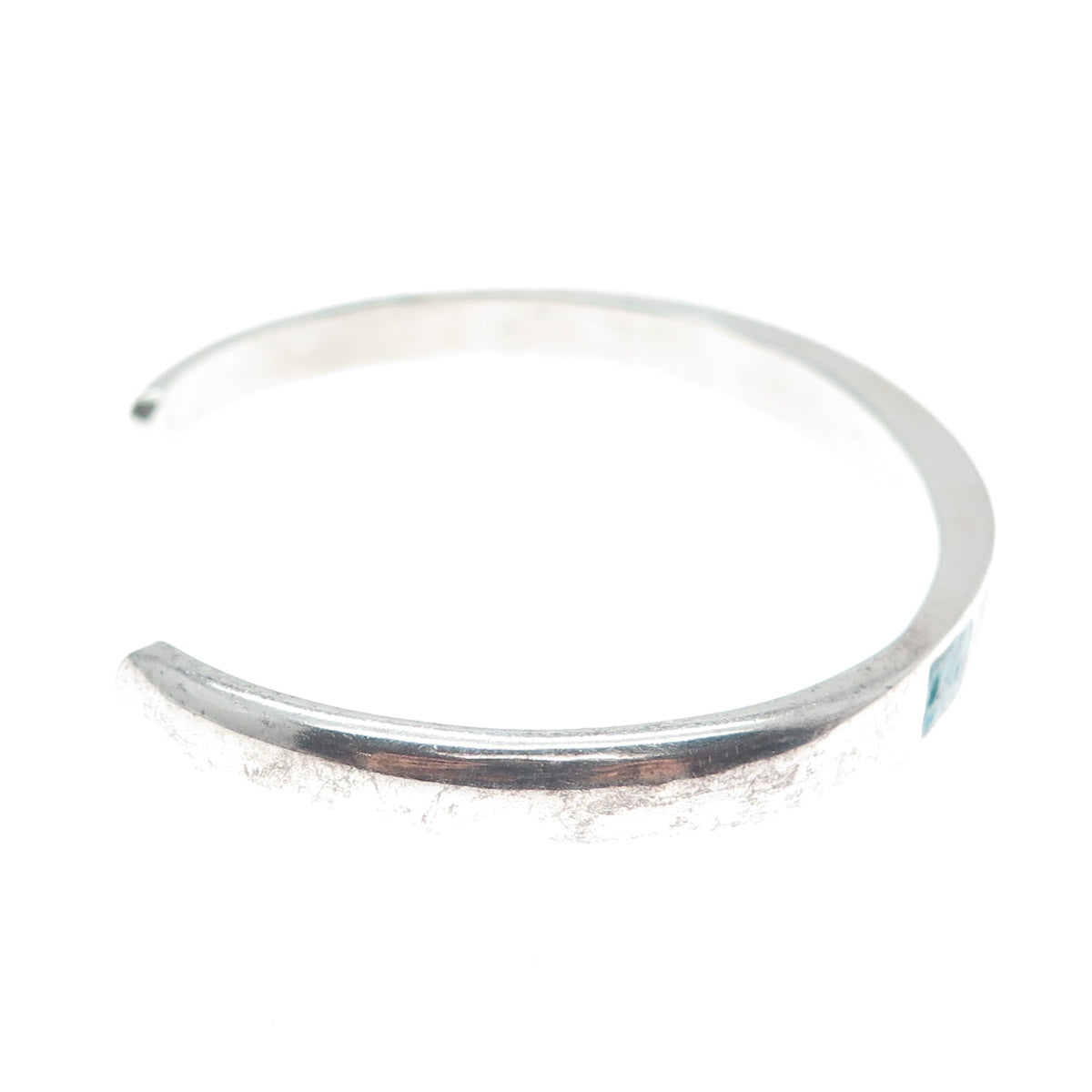Old Pawn 925 Sterling Silver Vintage Turquoise Inlay Adjustable Cuff Bracelet 6"