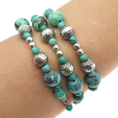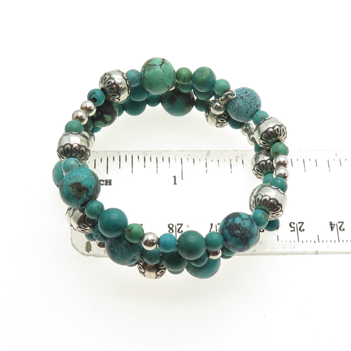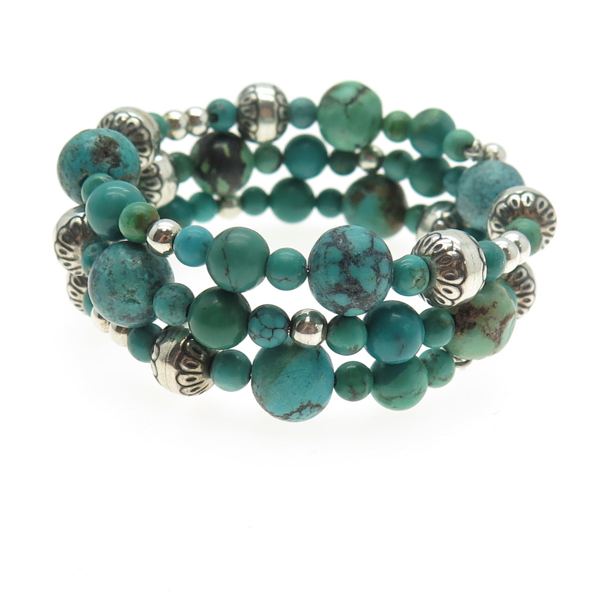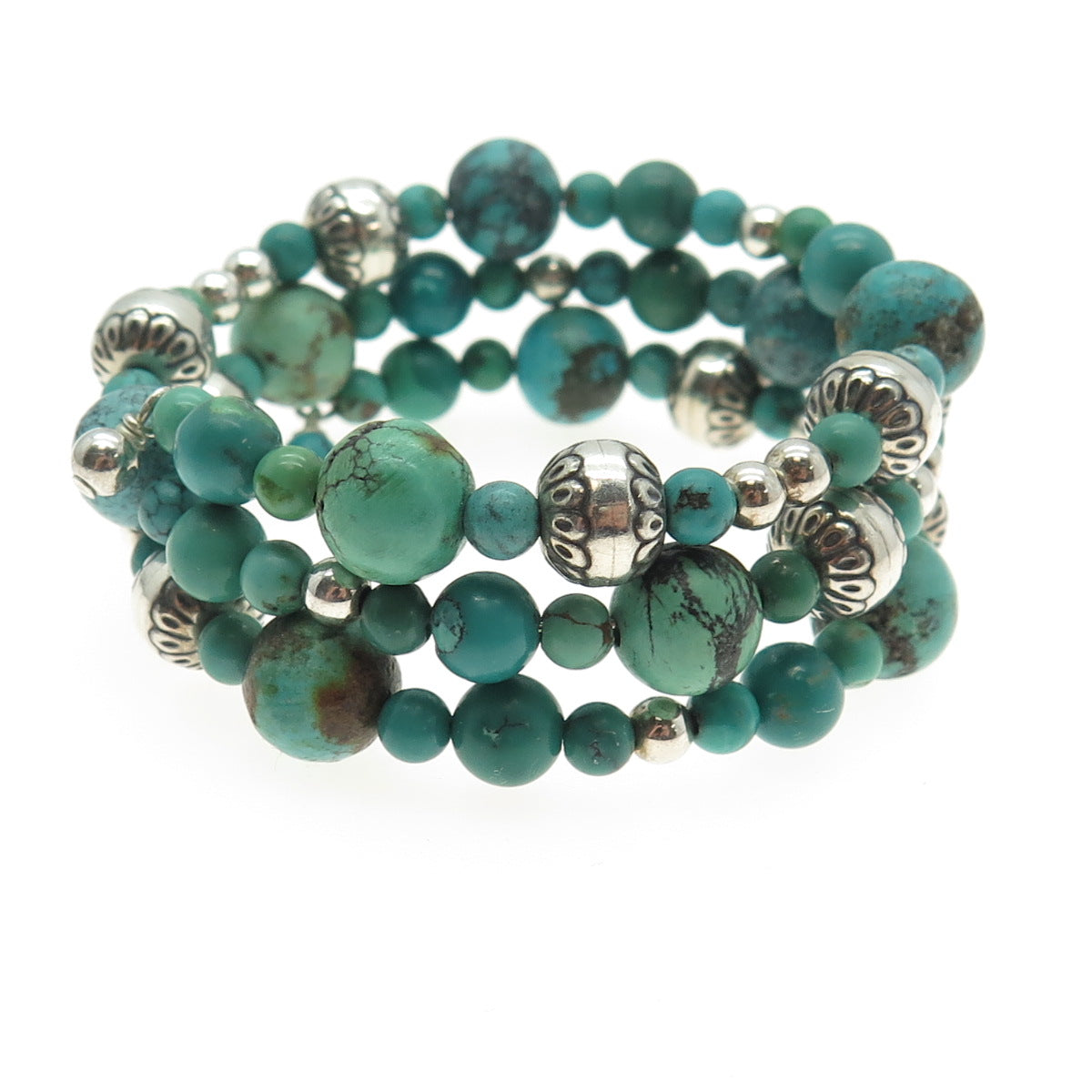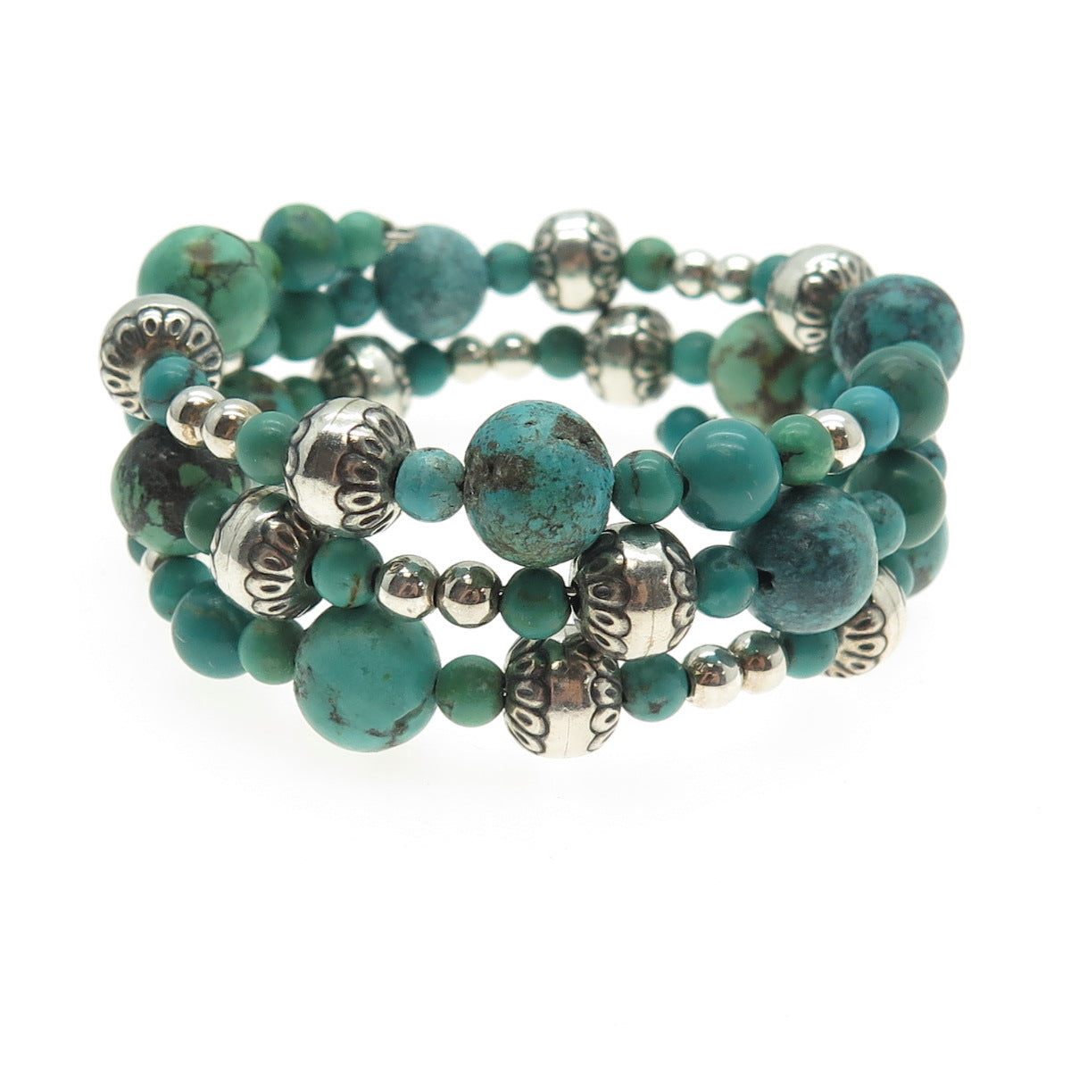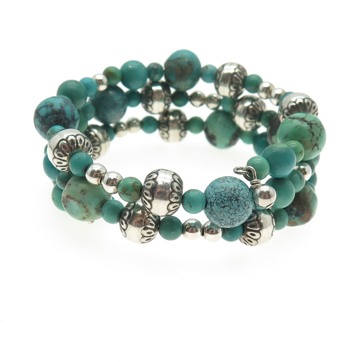 Old Pawn 925 Sterling Turquoise Navajo Pearls Beaded Adjustable Wrap Bracelet 6"
